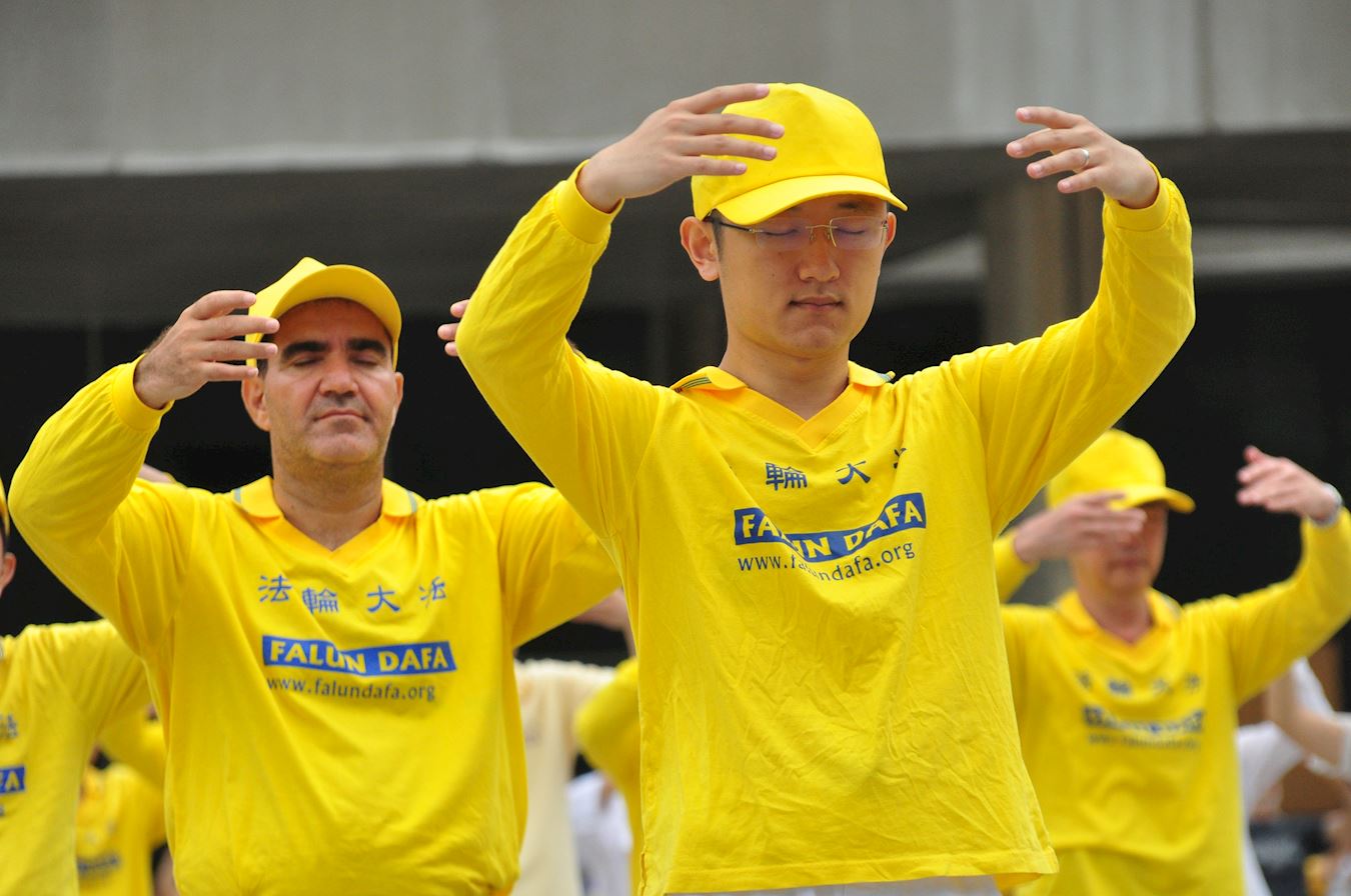 ![]() 图1~4:法轮功学员在多伦多市政府广场前举行大炼功。 |