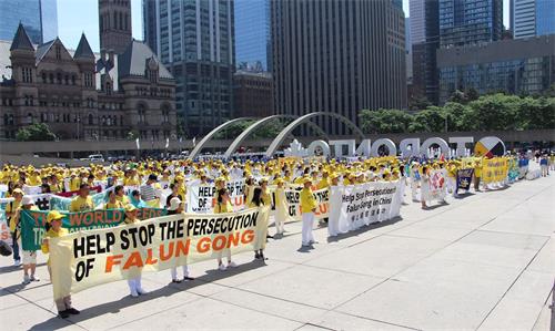 当天,前加拿大联邦参议员迪尼诺(Consiglio Di Nino),前加拿大国会议员李申(Wladslaw Lizon),宗教人权组织“同一个自由世界”(One Free World International)创办人沙菲(Majed El Shafie),民阵副主席盛雪和大赦国际秘书长尼夫亚历克斯·内维(Alex Neve)到现场支持并发言。同时,加拿大三级政府都有议员为当天多伦多市的集会发来支持信,他们钦佩法轮功学员的坚韧和勇气,赞扬法轮功学员在加拿大倡导法轮大法。