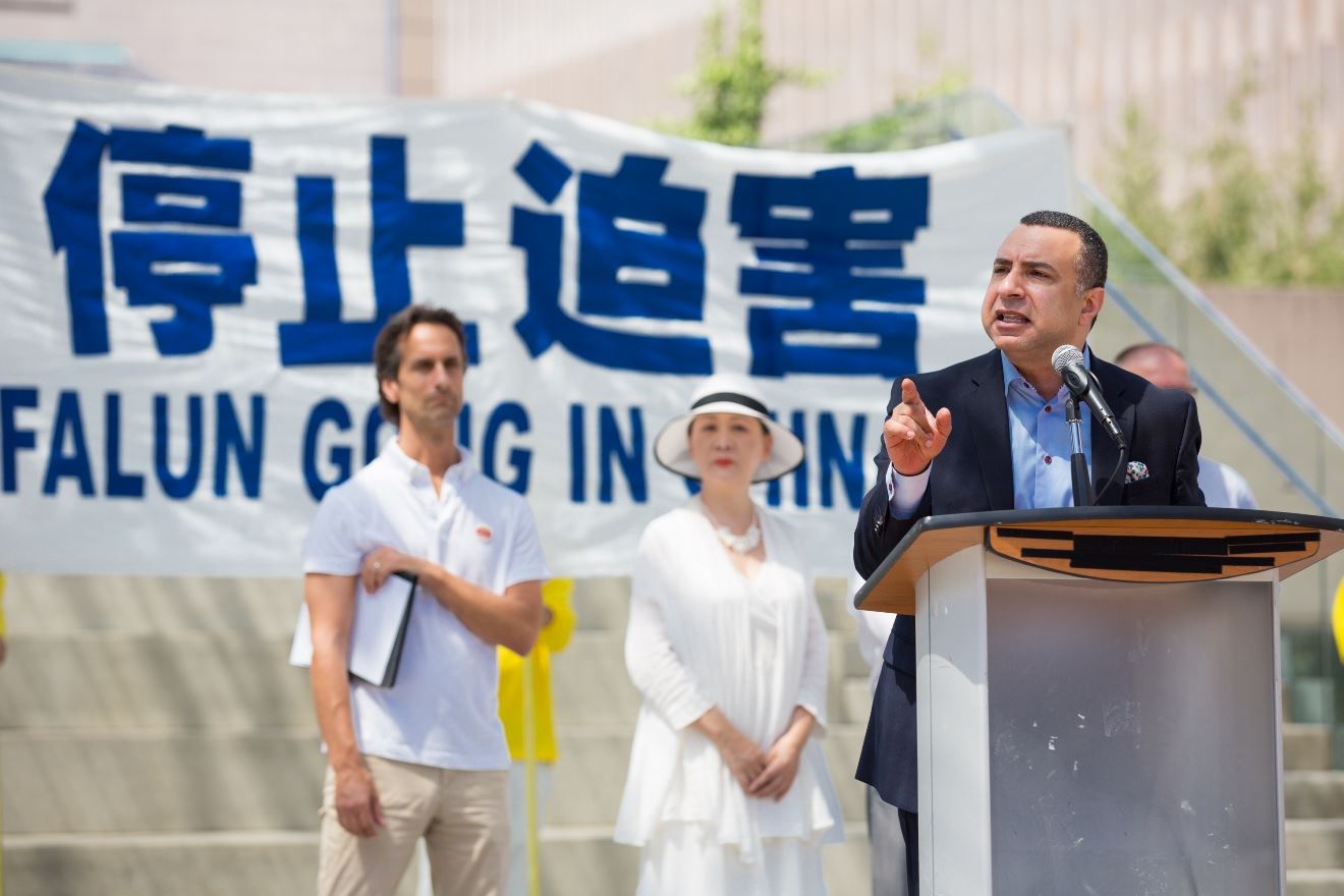 前加拿大联邦参议员迪尼诺(Consiglio Di Nino)说:“我来参加这集会的一个主要原因,是因为你们的勇气。因为你们的专注和坚持,你们是英雄。”“你们站在那里告诉世界,尤其是告诉中国人。这么多人站在这里要求停止迫害,真的是很鼓舞人心。”“和你们站在一起,我感到很自豪。”