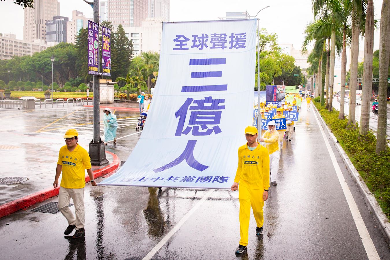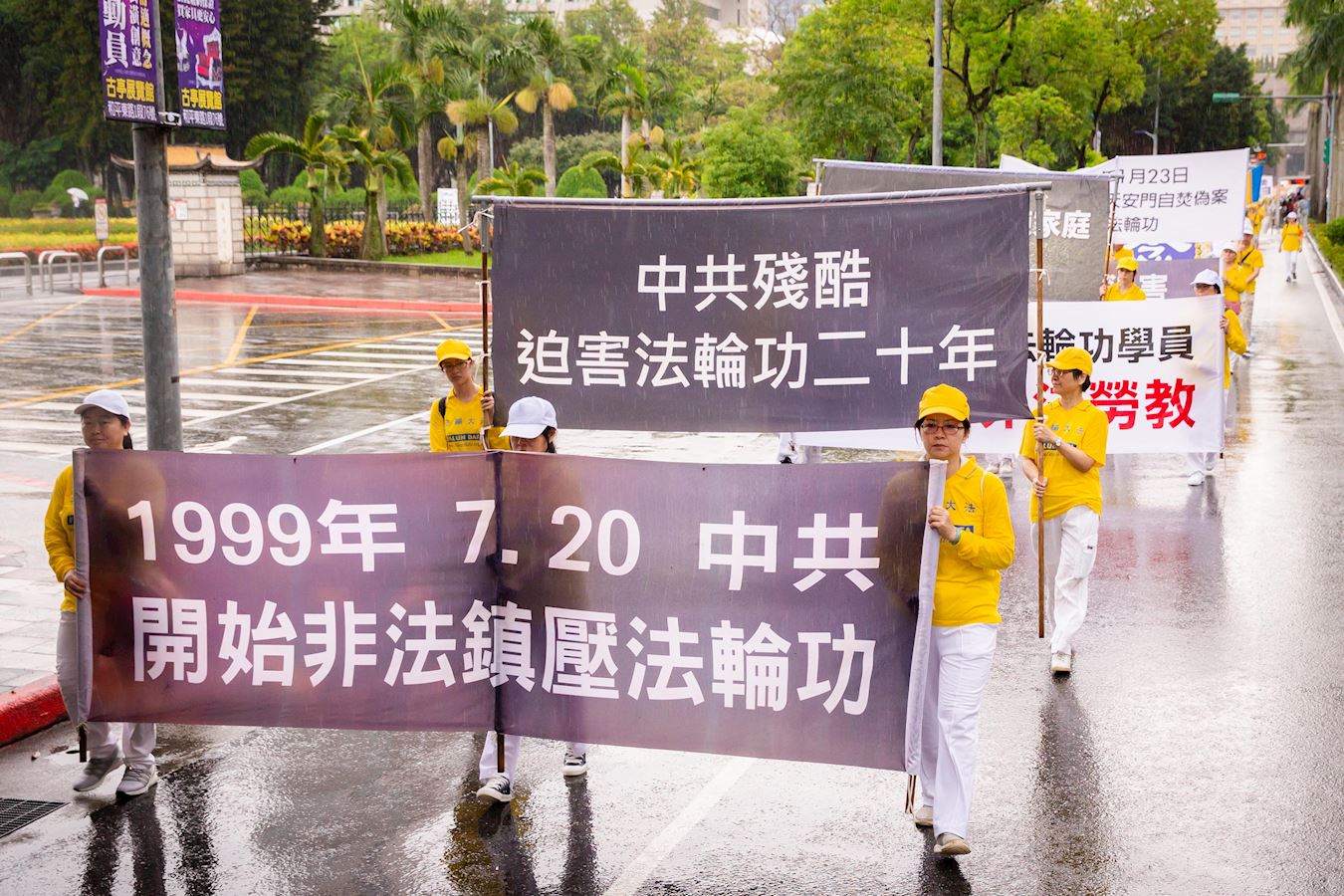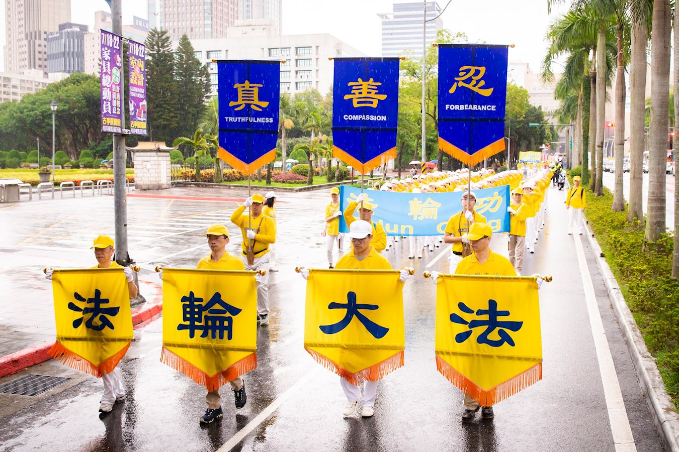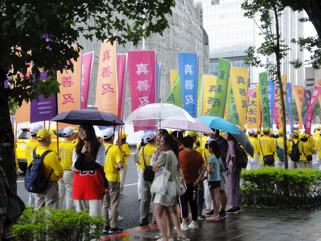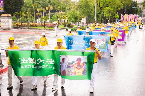 二零一九年七月二十日,来自大台北、桃园市、新竹市、新竹县、苗栗县、宜兰花莲地区的部份法轮功学员,在台北市举行大游行。两千名法轮功学员组成的游行队伍,分为“大法洪传”、“千古奇冤”、“三:退.大潮”和“结束迫害”等四个方阵,中间还穿插炼功演示队、仙女队、腰鼓队和旗鼓队。学员们手持各式真相幡旗、横幅与展板,传送法轮大法的美好与真善忍的福音,揭露中共残暴的邪恶本质,呼吁制止迫害、法办元凶,晓谕天灭中共的因由与必然。