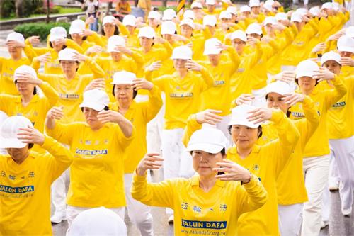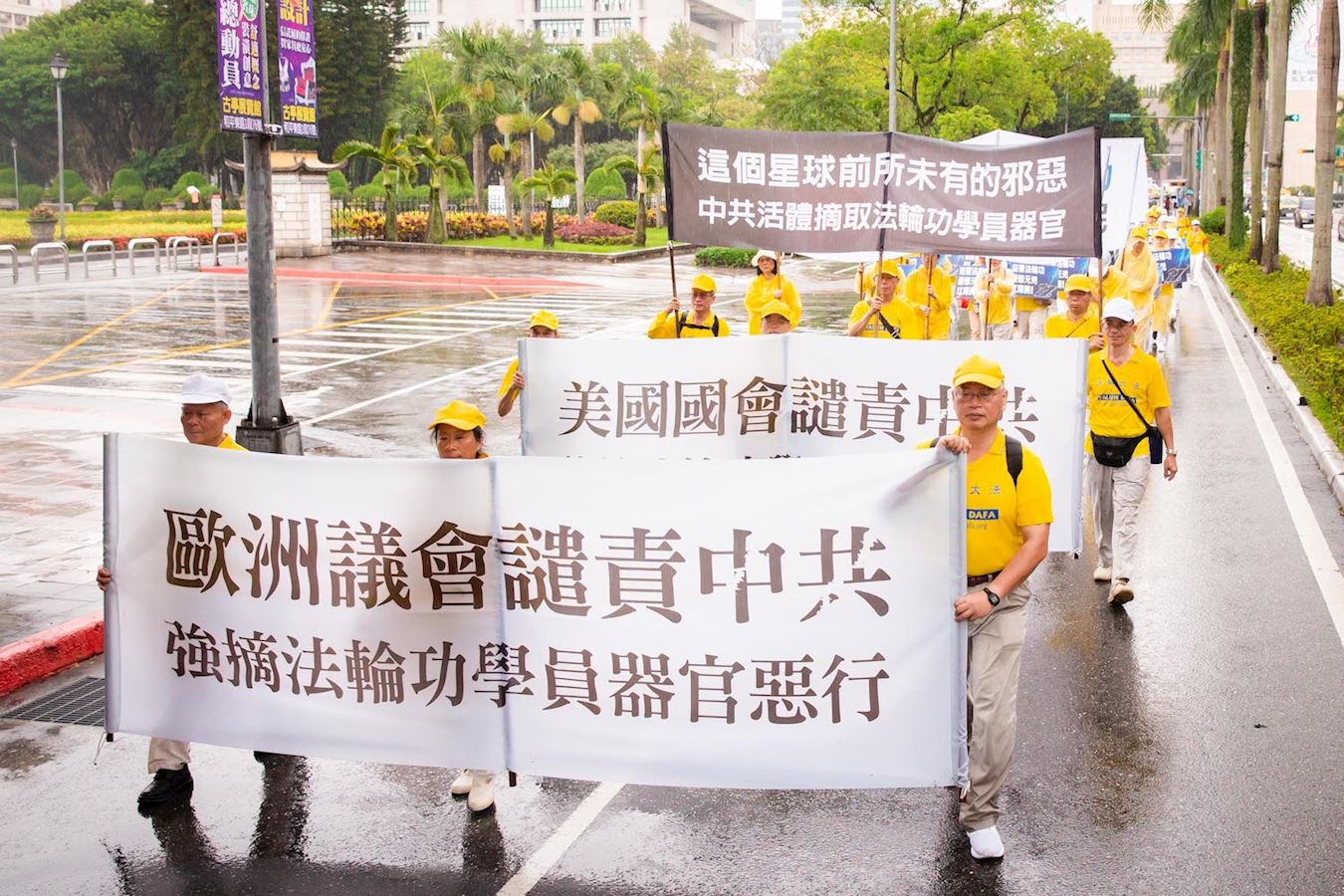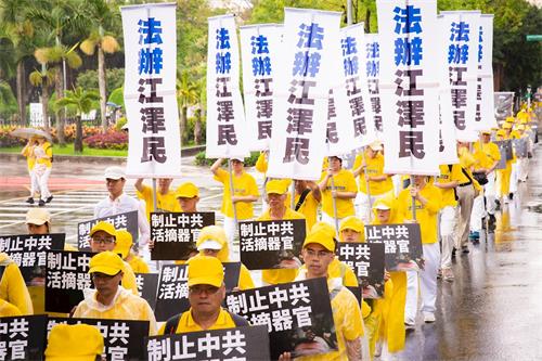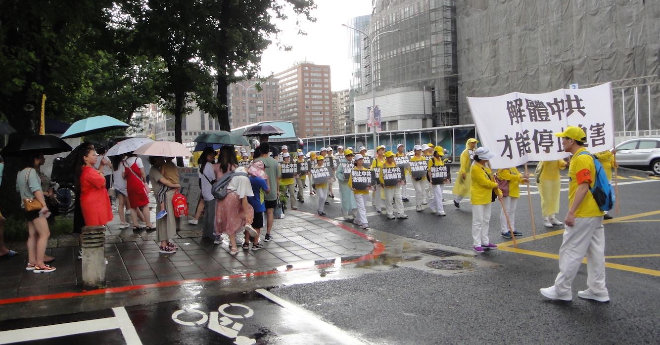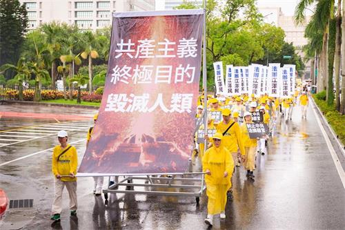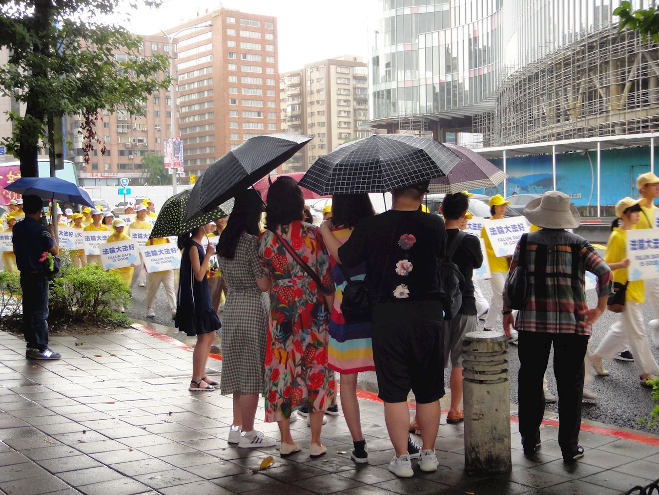 二零一九年七月二十日,来自大台北、桃园市、新竹市、新竹县、苗栗县、宜兰花莲地区的部份法轮功学员,在台北市举行大游行。两千名法轮功学员组成的游行队伍,分为“大法洪传”、“千古奇冤”、“三:退.大潮”和“结束迫害”等四个方阵,中间还穿插炼功演示队、仙女队、腰鼓队和旗鼓队。学员们手持各式真相幡旗、横幅与展板,传送法轮大法的美好与真善忍的福音,揭露中共残暴的邪恶本质,呼吁制止迫害、法办元凶,晓谕天灭中共的因由与必然。