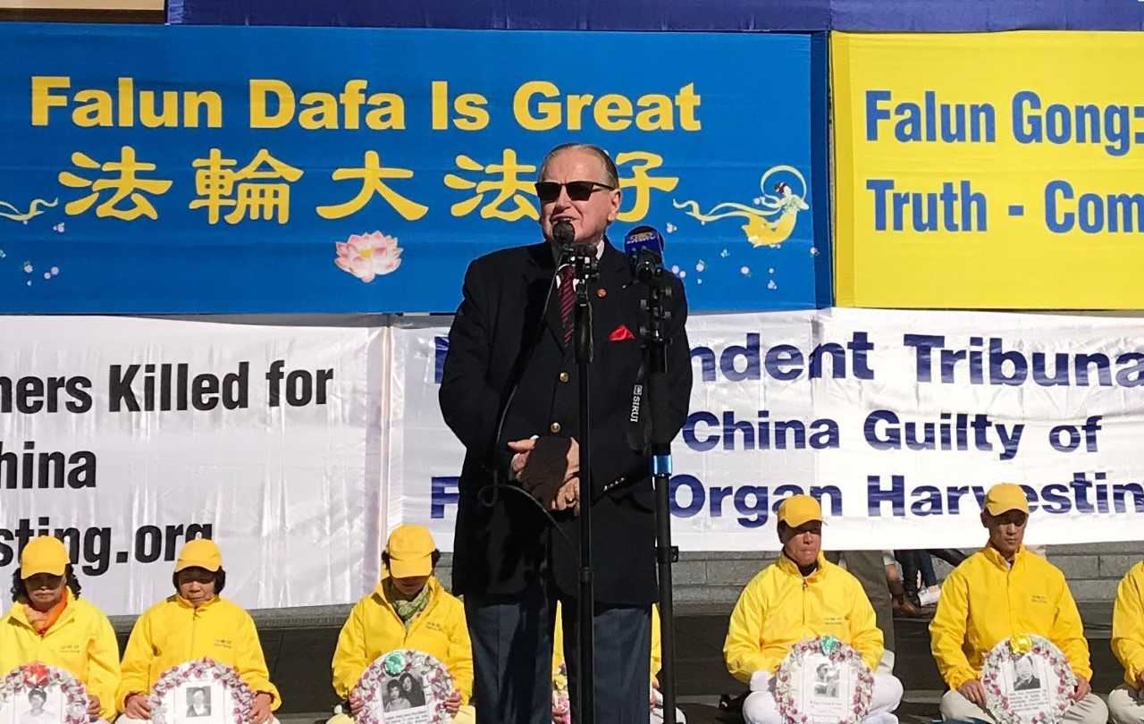 新州立法委员会议员和基督教民主党领袖弗雷德·尼罗(Rev Fred Nile MLC)在集会上表示:“法轮功(学员)没有违法,不应该被监禁。法轮功应该被允许自由的进行他们的文化活动,这些活动都是非常健康的,并且以真、善、忍指导他们的修炼。这些一直被视为是中国古老的传统文化。现代中国在今天必须恢复这些原则。我呼吁中国国家主席和政府成员为中国所有团体、特别是法轮功团体提供真正的自由。”