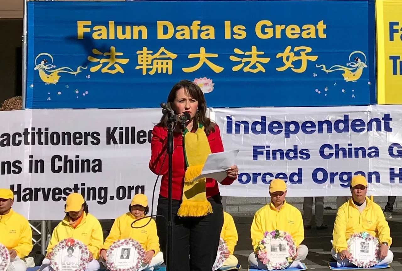 澳洲悉尼麦格理大学临床伦理学教授、“终止中国(中共)器官移植滥用国际联盟”(ETAC)国际咨询委员会主席温迪·罗杰斯(Wendy Rogers)在集会上指出,中共反对法轮功的运动是如何从监禁,酷刑和洗脑转变为使用被监禁的法轮功学员作为促进中国二零零零年移植率迅速提高的有价值的器官来源。