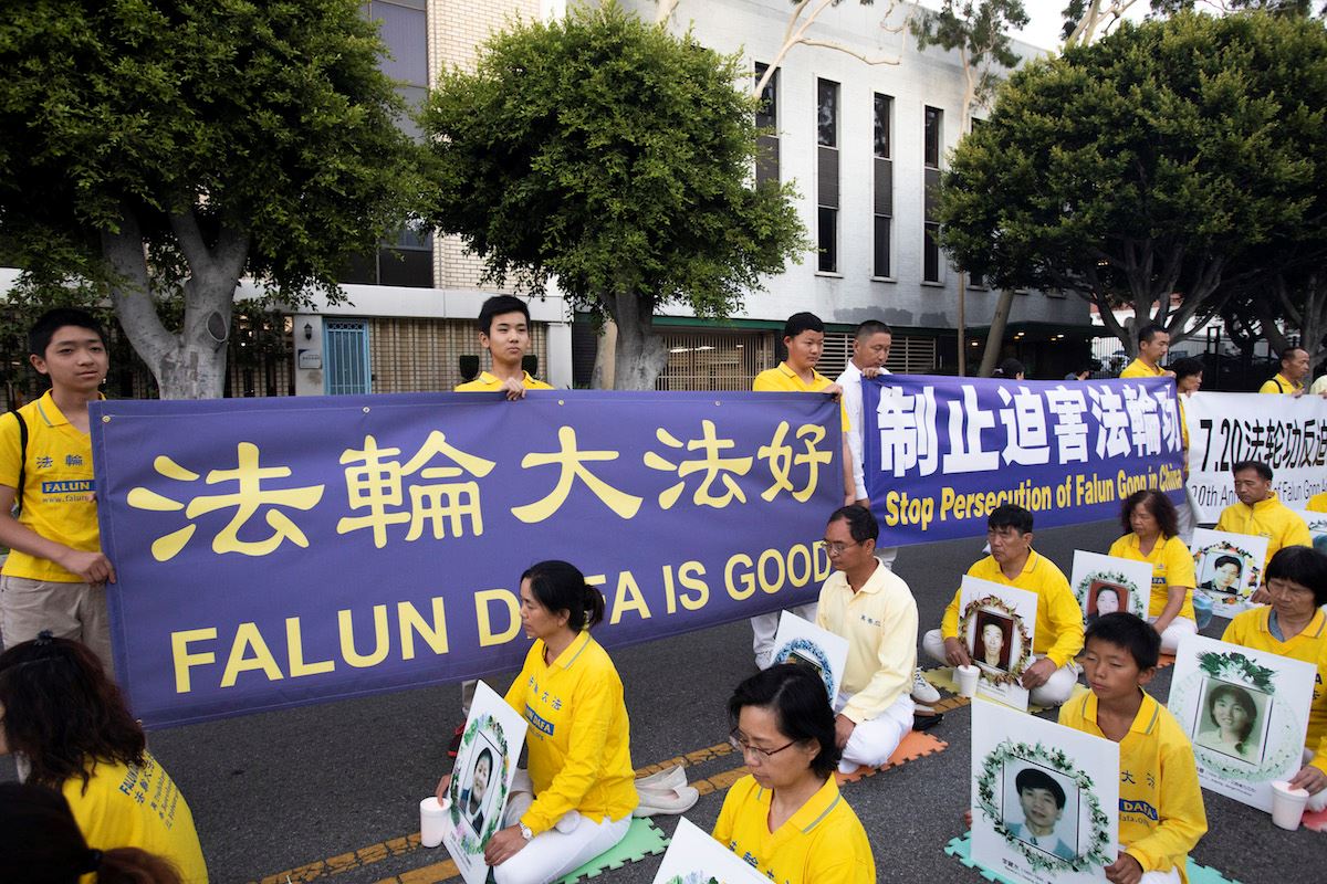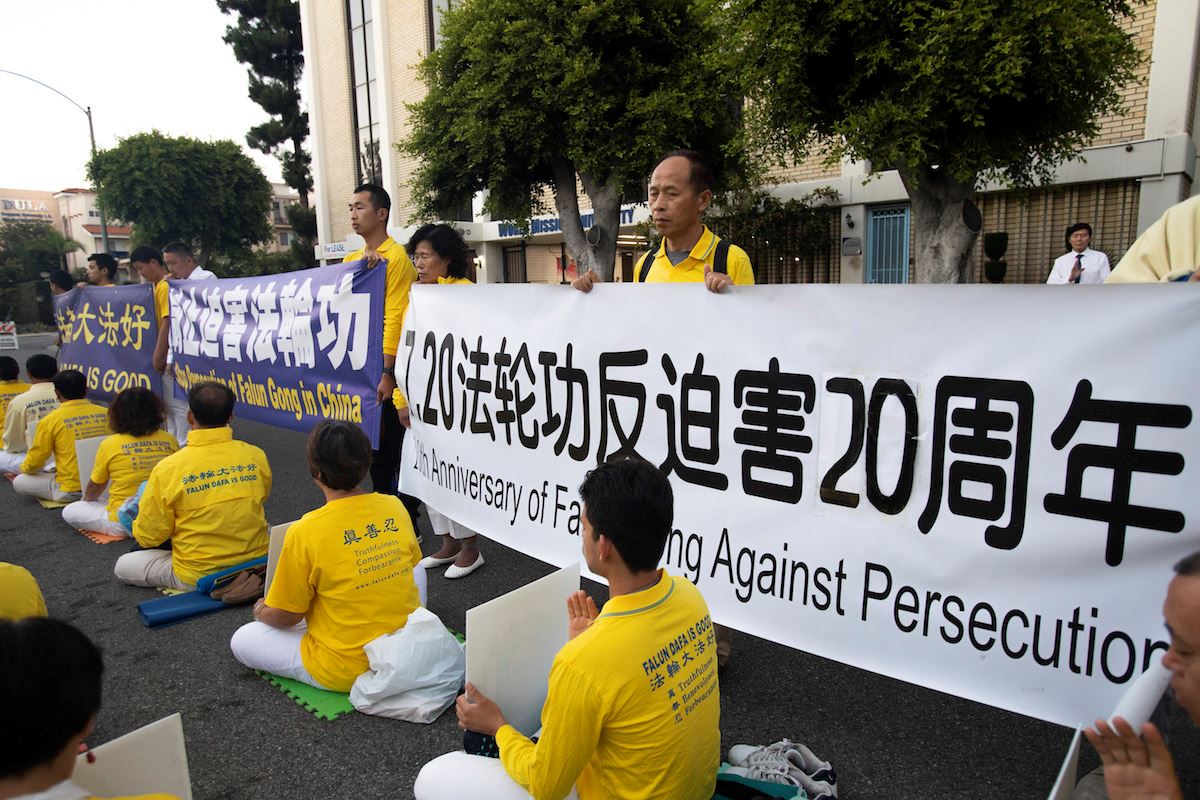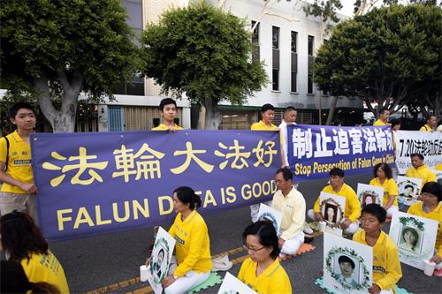 二零一九年七月十九日下午五点半,部份洛杉矶学员们及支持者聚集在洛杉矶市中心人口稠密、车潮川流不息的威尔夏大道(Wilshire Blvd.)与佛蒙特南街(S. Vermont)街口拉起一道道横幅:“法轮大法好”、“停止迫害法轮功”、 “法办迫害元凶江泽民”、”解体中共 停止迫害”等,吸引往来车辆、行人的目光。当晚福克斯电视台(FOX 11)也前来采访,他们询问了好几位遭受迫害的法轮功学员,仔细了解了他(们)被迫害的情况。