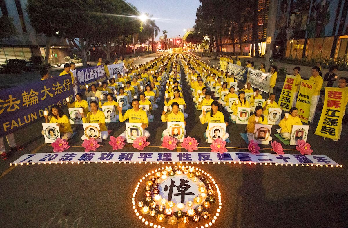 ![]() 图4~6:洛杉矶法轮功学员举办烛光悼念活动,纪念二十年里被迫害致死的法轮功学员。 |