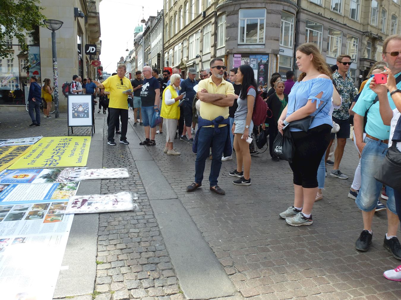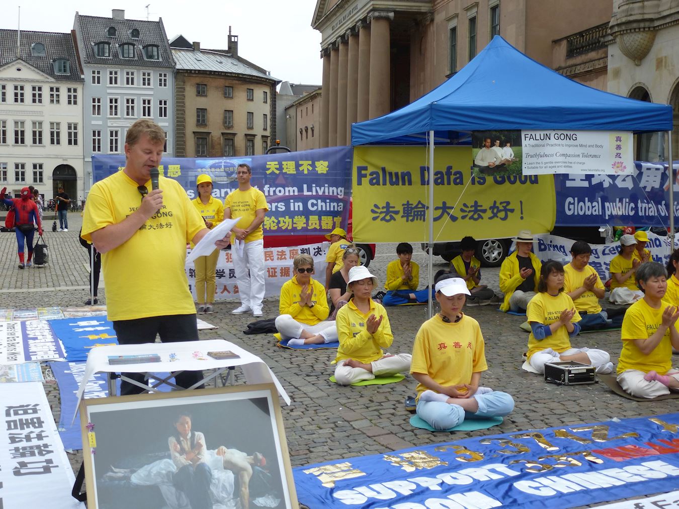 七月二十日下午三时,丹麦法轮大法学会代表本尼·布里克斯(Benny Brix)首先发言:“今天,二零一九年七月二十日我们丹麦法轮大法学员聚集在这里,在哥本哈根的市中心,举办纪念这一特殊日子的活动。就是在二十年前,一九九九年的今天,中共政府及其独裁者江泽民,在中国悍然发动了对法轮大法学员的残酷迫害。自那时起到现在,中共独裁者动用手中的国家机器,对上亿修炼“真善忍”的法轮功修炼者开始了史无前例的全面系统的残酷迫害,实施灭绝性迫害政策“名誉上搞臭,经济上截断,肉体上消灭”。二十年来,面对谎言、仇恨、酷刑,无数大法弟子坚定的走出来,坚守自己的信仰与良心、维护“真、善、忍”宇宙真理。难以计数的法轮功学员被迫害致死,被活摘器官。他们用生命实践真、善、忍、证实法轮大法好。