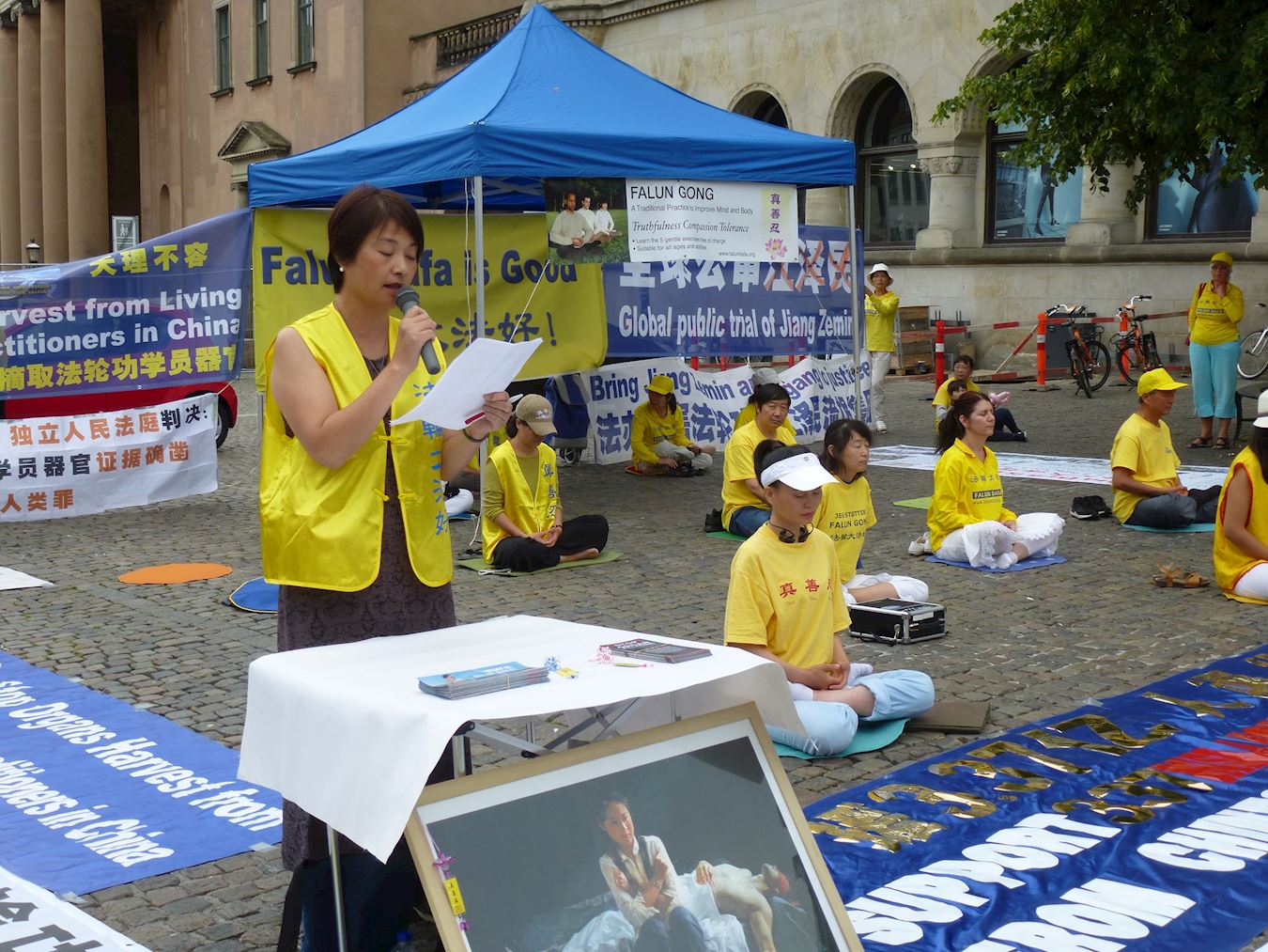 来自武汉的陈曼女士,因为不放弃对法轮功“真、善、忍”的信仰,被判刑度过了漫长的七年牢狱。她来到中使馆前、来到哥本哈根世人面前,讲述了她那天的经历:“7·20 这个日子,很多人可能认为这就是日历上的一个普通日子,但是,对很多人来说却是人类历史与生命坐标的改变。二十年前的七月十九日夜间,在我的家乡武汉,一夜之间全市的义务辅导员们全部被警方无端带走,彻夜未归。我所在片区的辅导员也在被抓之列。消息传来,大家都震惊了。