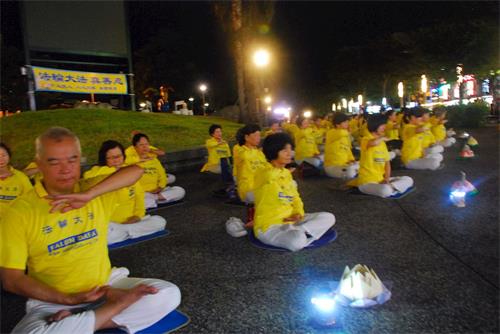 修炼十五年的学员施小姐说以前得过大病,现在都好了,急性子也改变了:“这里嘉义是繁华地点,今晚主要悼念大陆受迫害学员,让世人了解真相,中共对法轮功迫害应该停止,让世界归于和平,人人道德提高。”