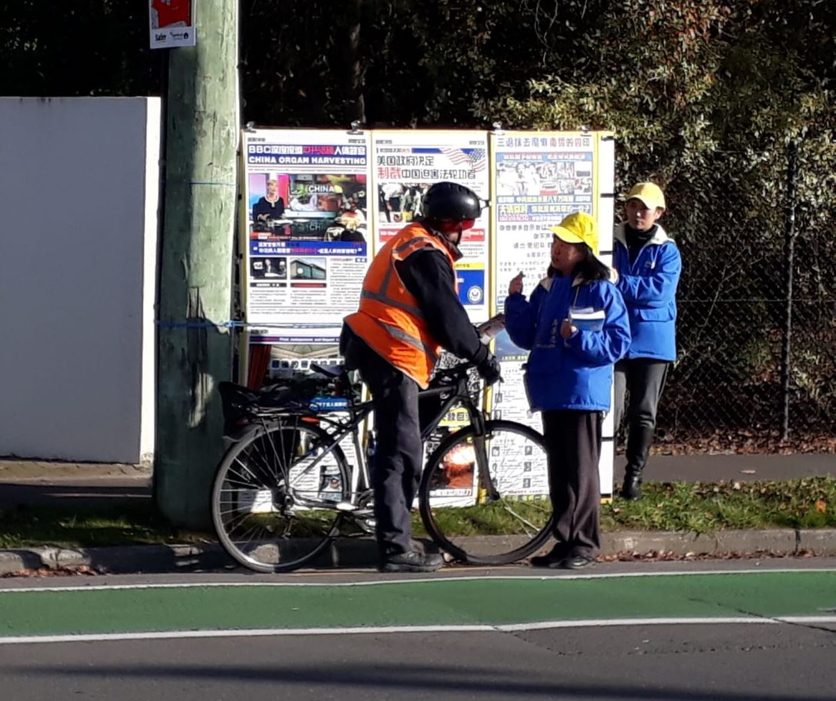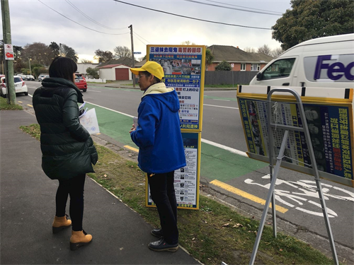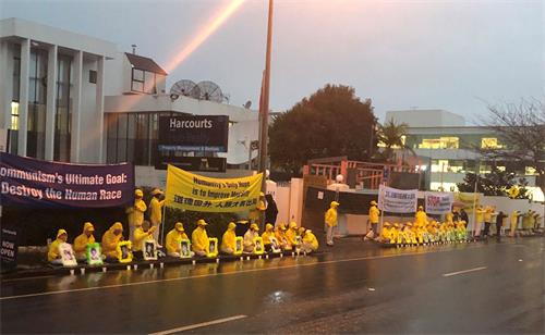 ![]() 图3:基督城法轮功学员在中领馆门前呼吁停止迫害。 |