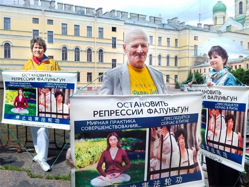 二零一九年七月二十日,在圣彼得堡中共总领馆前举办了多小时的单人抗议接力活动。来自乌法市的一对年轻夫妇第一次听说法轮功学员因信仰遭受迫害。他们对共产党当局的行为表示愤慨,并且支持学员的活动。在详细了解了法轮功是一种祛病健身有奇效的气功后,表示也很想学炼,回家后仔细阅读资料。