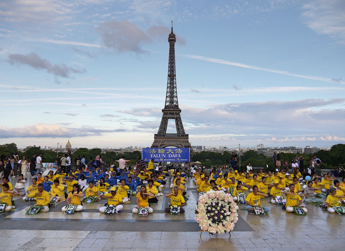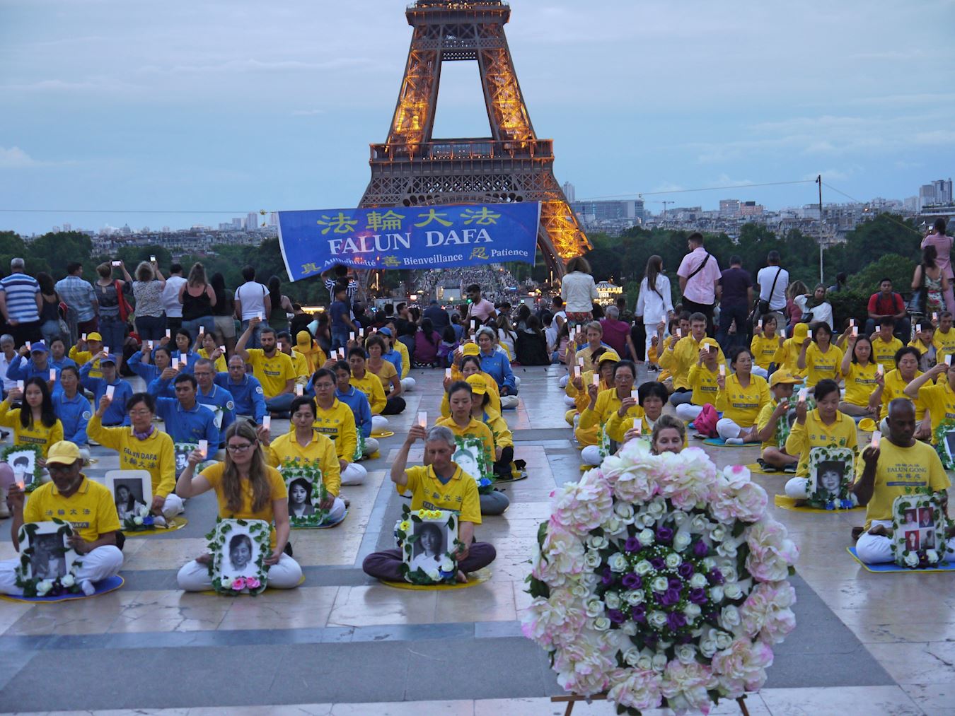 【明慧网二零一九年七月二十三日】(明慧记者周文英法国巴黎报道)二零一九年七月二十日傍晚时分,埃菲尔铁塔下的人权广场聚集了法轮功学员,他们身着黄色T恤,点亮烛光,静静的打坐,纪念被中共迫害致死的法轮功同修。