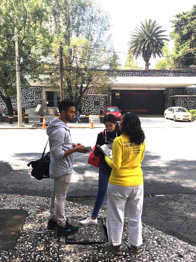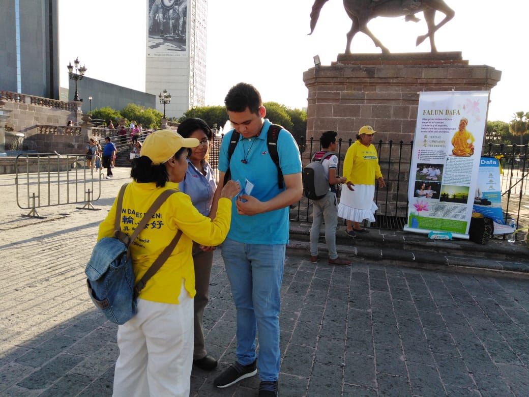 一位学生说:“法轮功学员做得很好,你们在声援那些受迫害的中国人,这是令人钦佩的。瓜达拉哈拉(Guadalajara)居民听到中共对法轮功的迫害,他们感到愤怒。希望情况发生变化。”