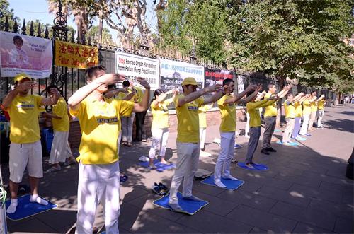 ![]() 图1~5:在中国城集体炼功并讲真相 |