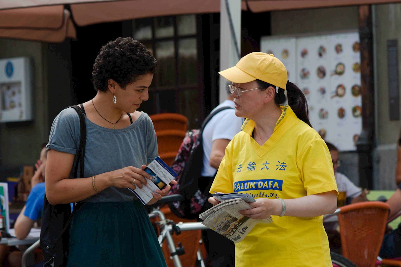 ![]() 图4:路人向法轮功学员了解真相 |