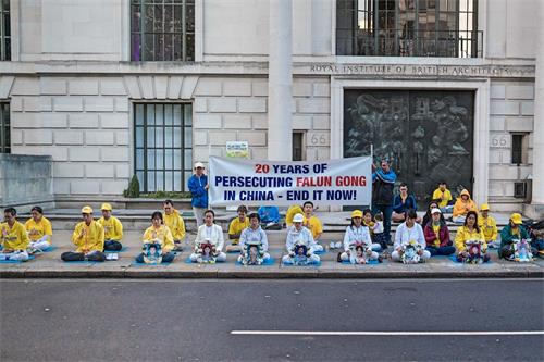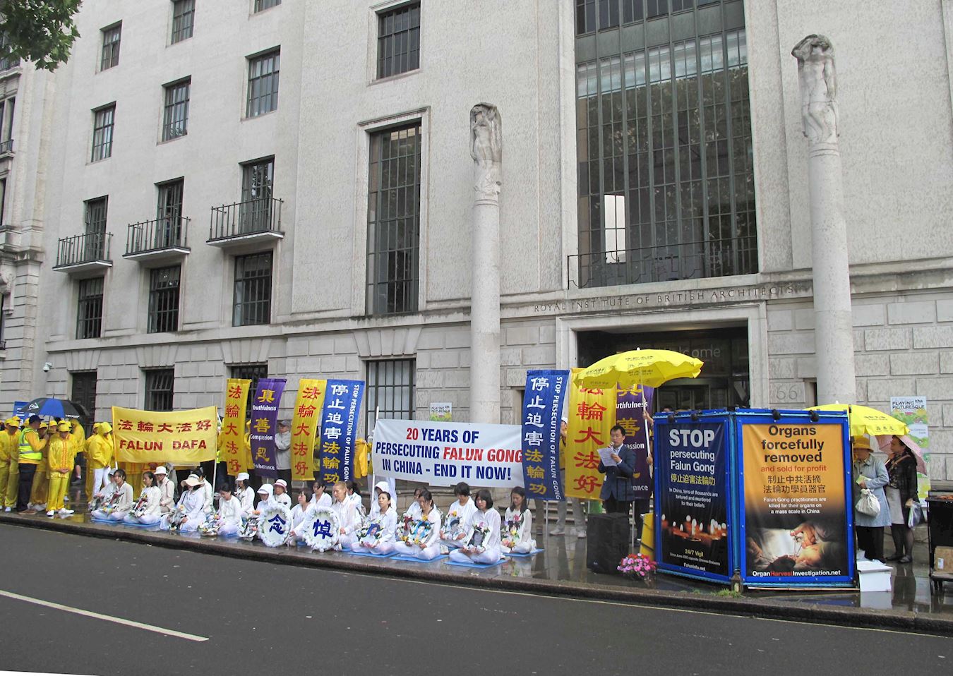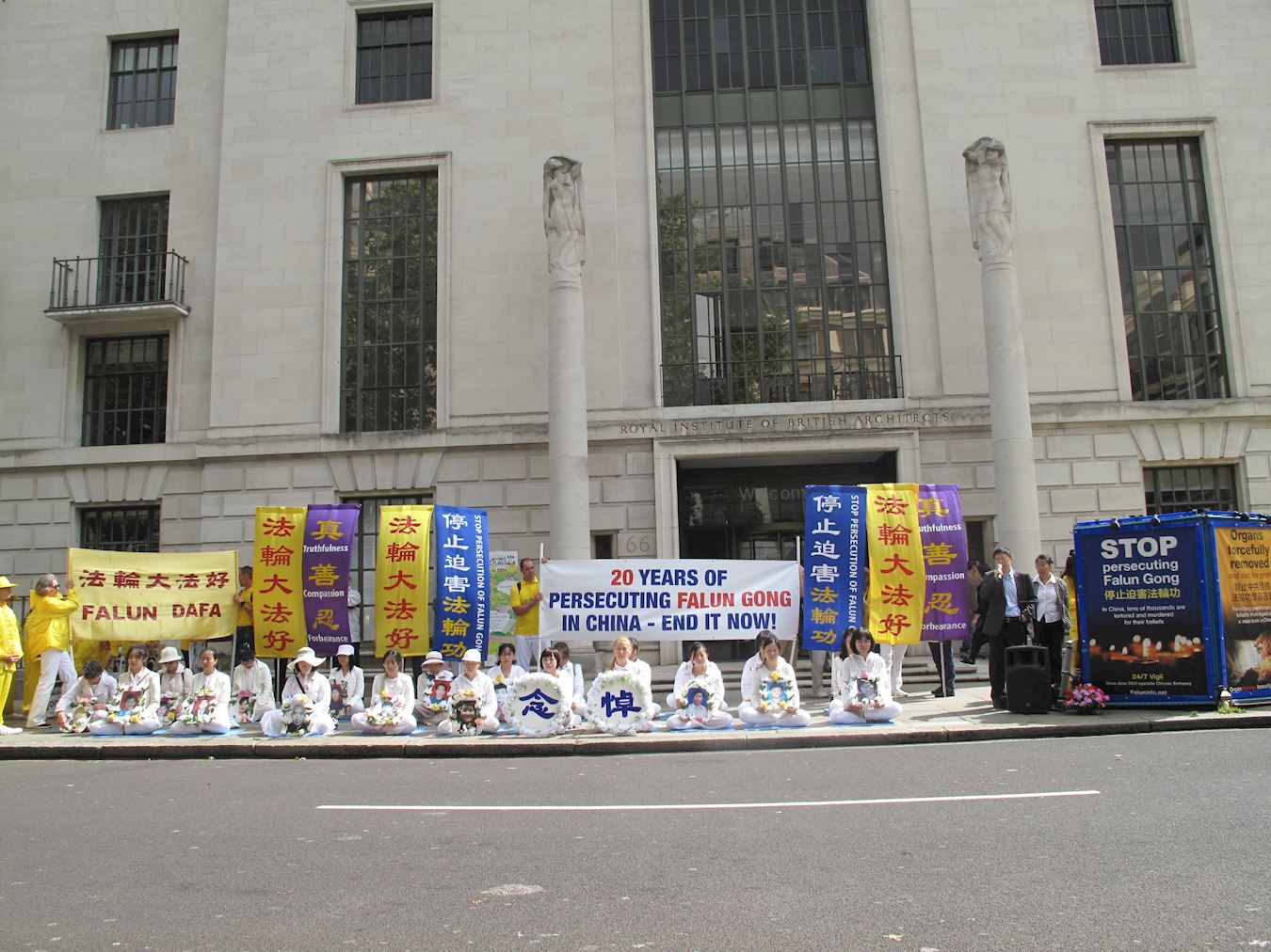 二零一九年七月二十日,英国法轮功学员在伦敦举办集会游行讲真相系列活动,纪念“反迫害二十周年”,责令中共立即停止迫害法轮功。从早九点到晚九点的十二小时里,法轮功学员先后在中使馆前举行新闻发布会和集体炼功、在伦敦市中心大游行、在唐宁街10号首相府(10 Downing Street)递交给英国首相的呼吁信以及请愿征签联署表、在圣马丁广场(St Martin Place)集会、在唐宁街10号首相府前炼功和征签反迫害、在中使馆前举行烛光悼念等活动。