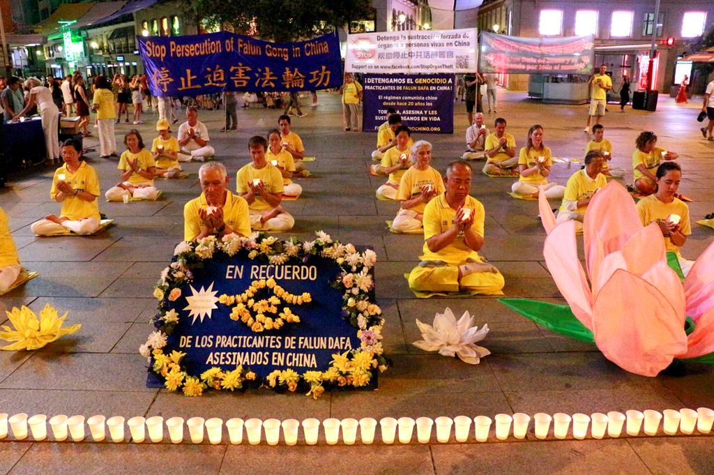 图5:2019年7月19日,法轮功学员在马德里Callao广场上烛光夜悼。