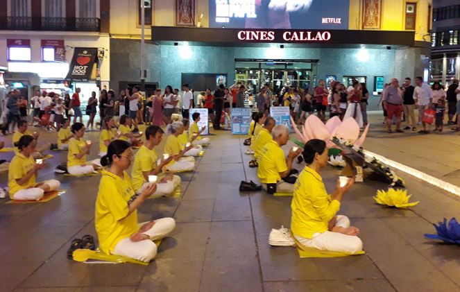 图4:2019年7月19日,法轮功学员在马德里Callao广场上炼功。