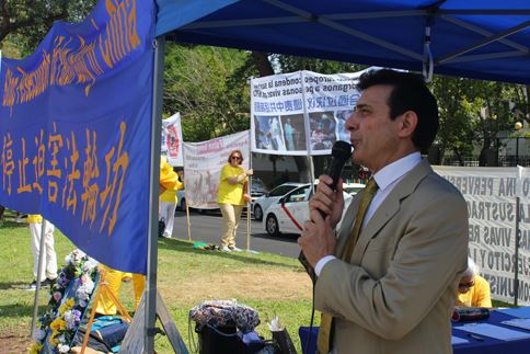 人权律师卡洛斯·伊格莱西到集会现场发言。他谴责二十年来中共在迫害法轮功中所犯下的反人类罪行,呼吁中共立即停止迫害。他告诫那些驻西班牙的中共官员,不要随同中共迫害法轮功,勿在西班牙国土上侵犯人权。他说,任何违犯西班牙法律的行为都将受到追究。