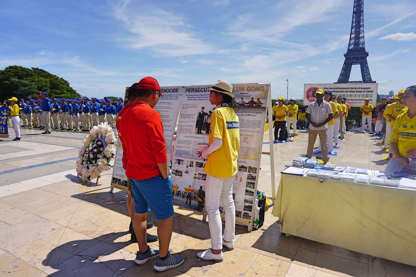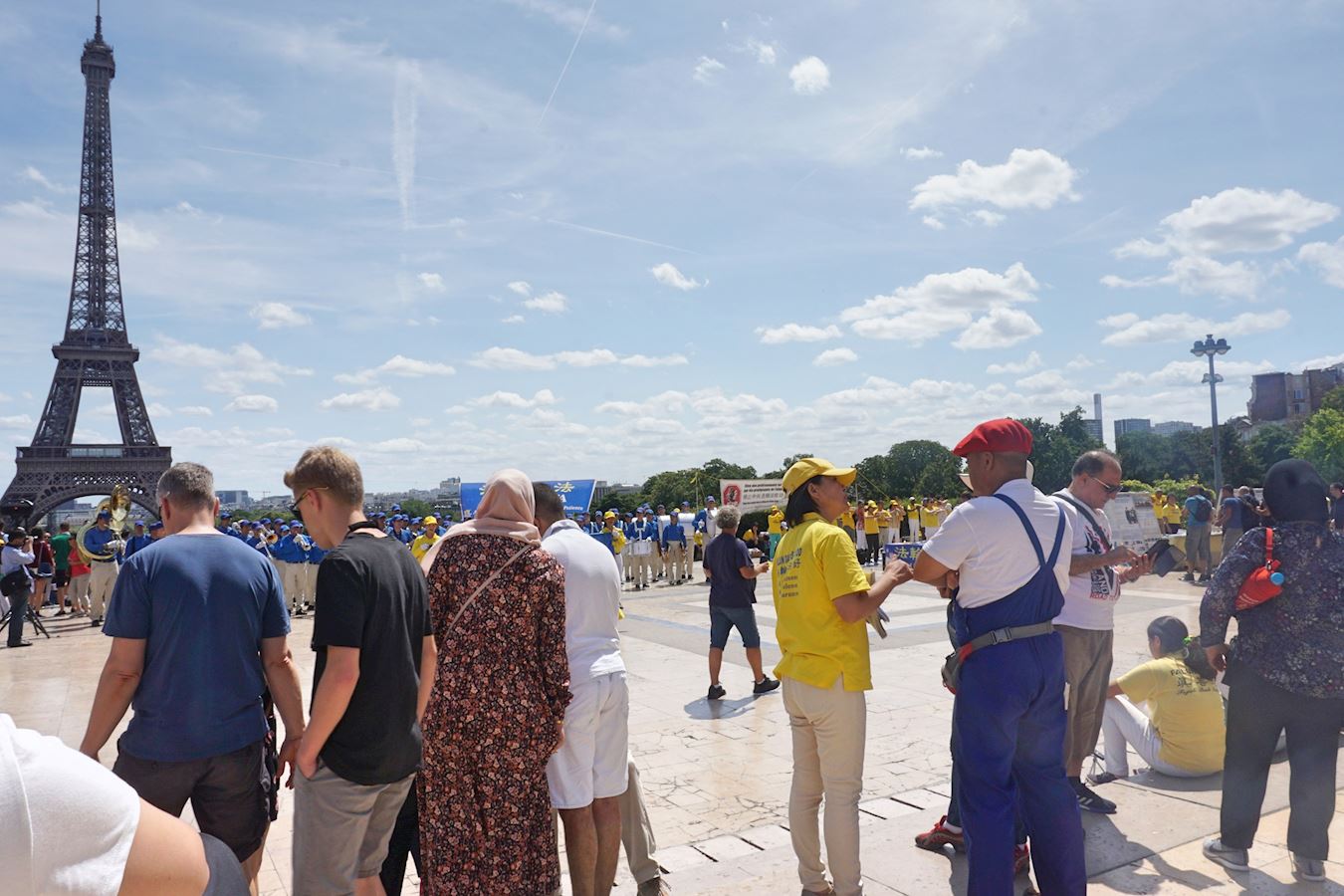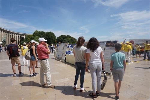 ![]() 图1:七月二十一日又来到了巴黎著名景点埃菲尔铁塔下的人权广场,继续传播法轮功的真相,呼吁制止迫害。 |
