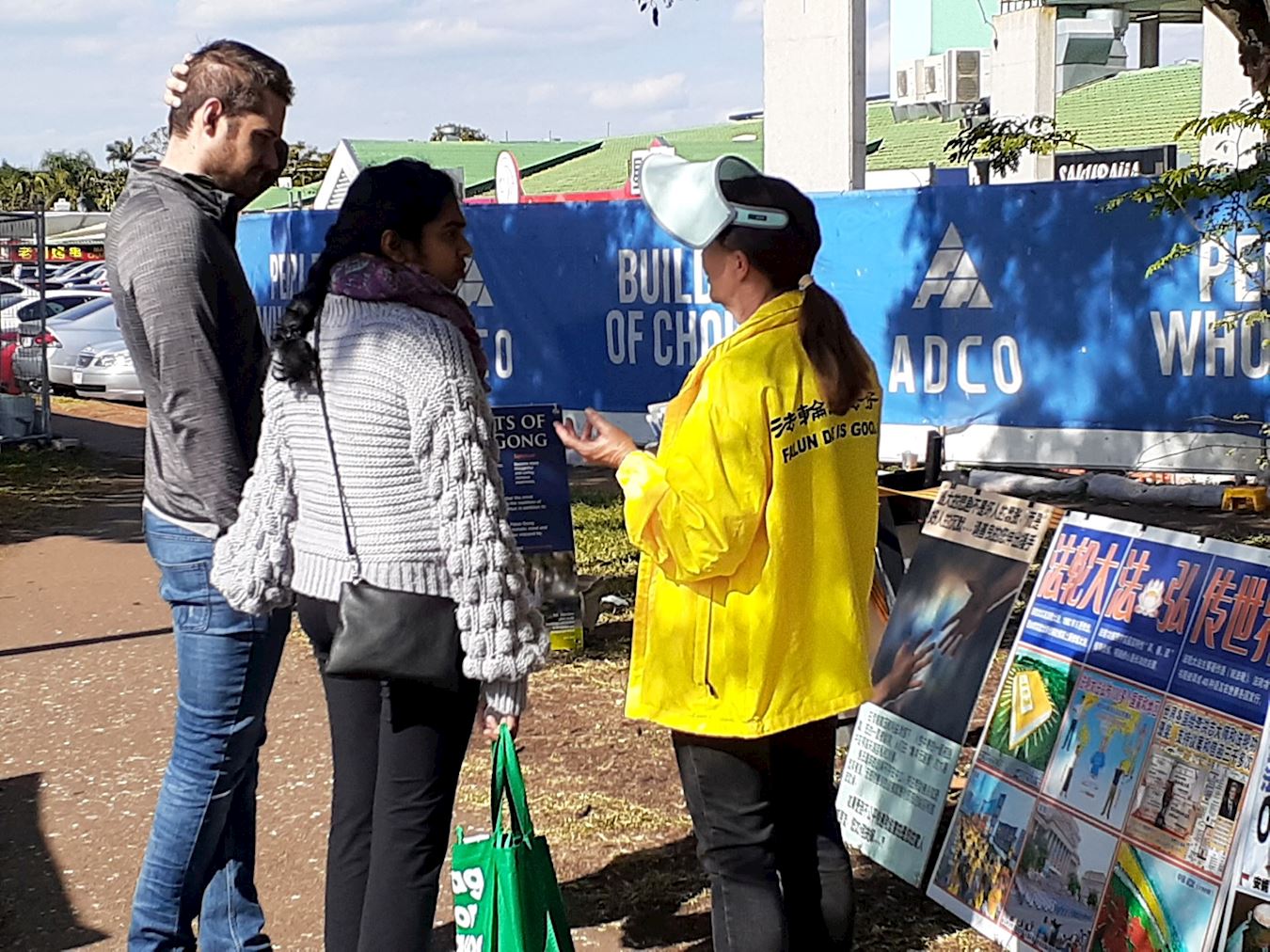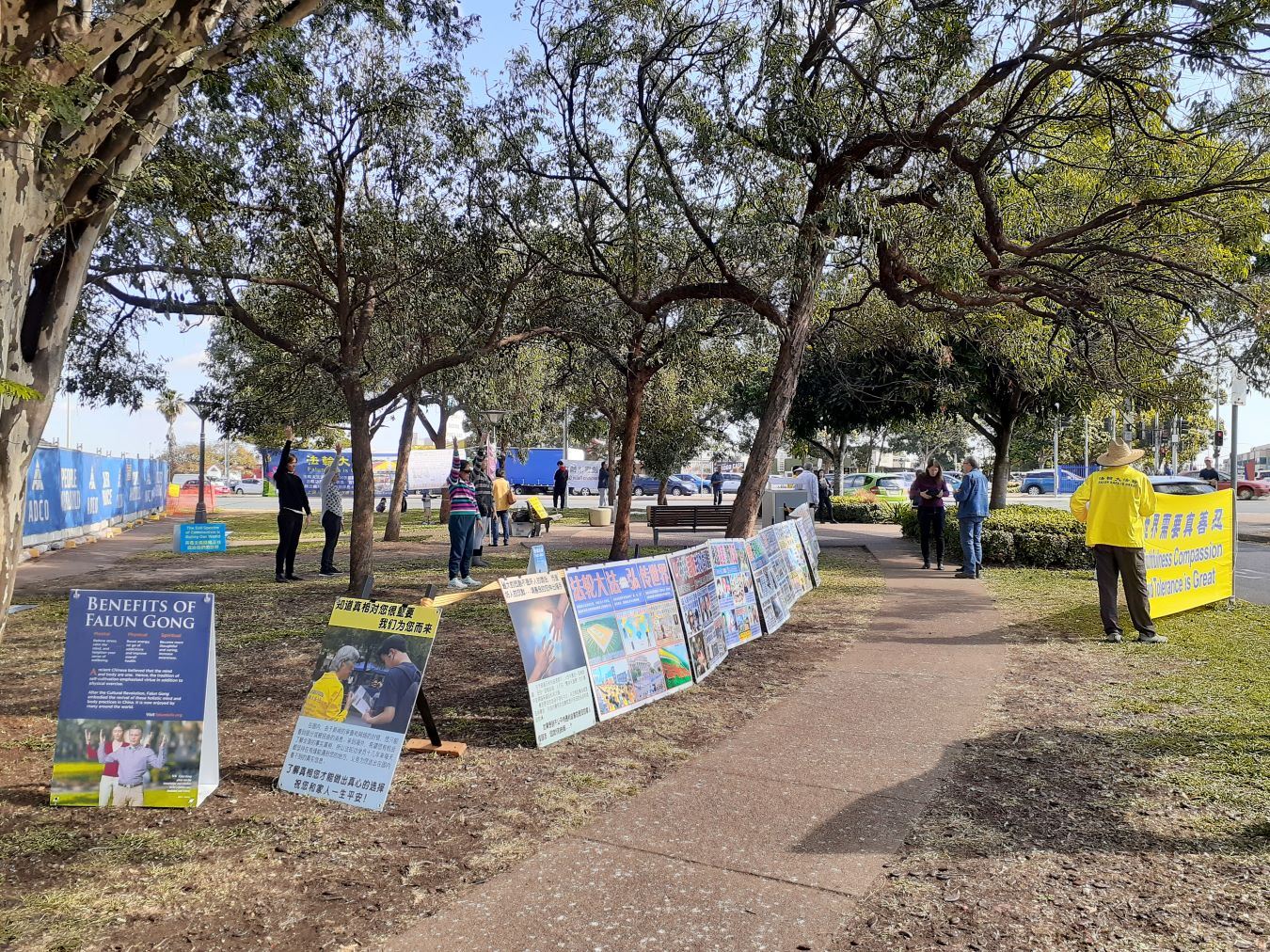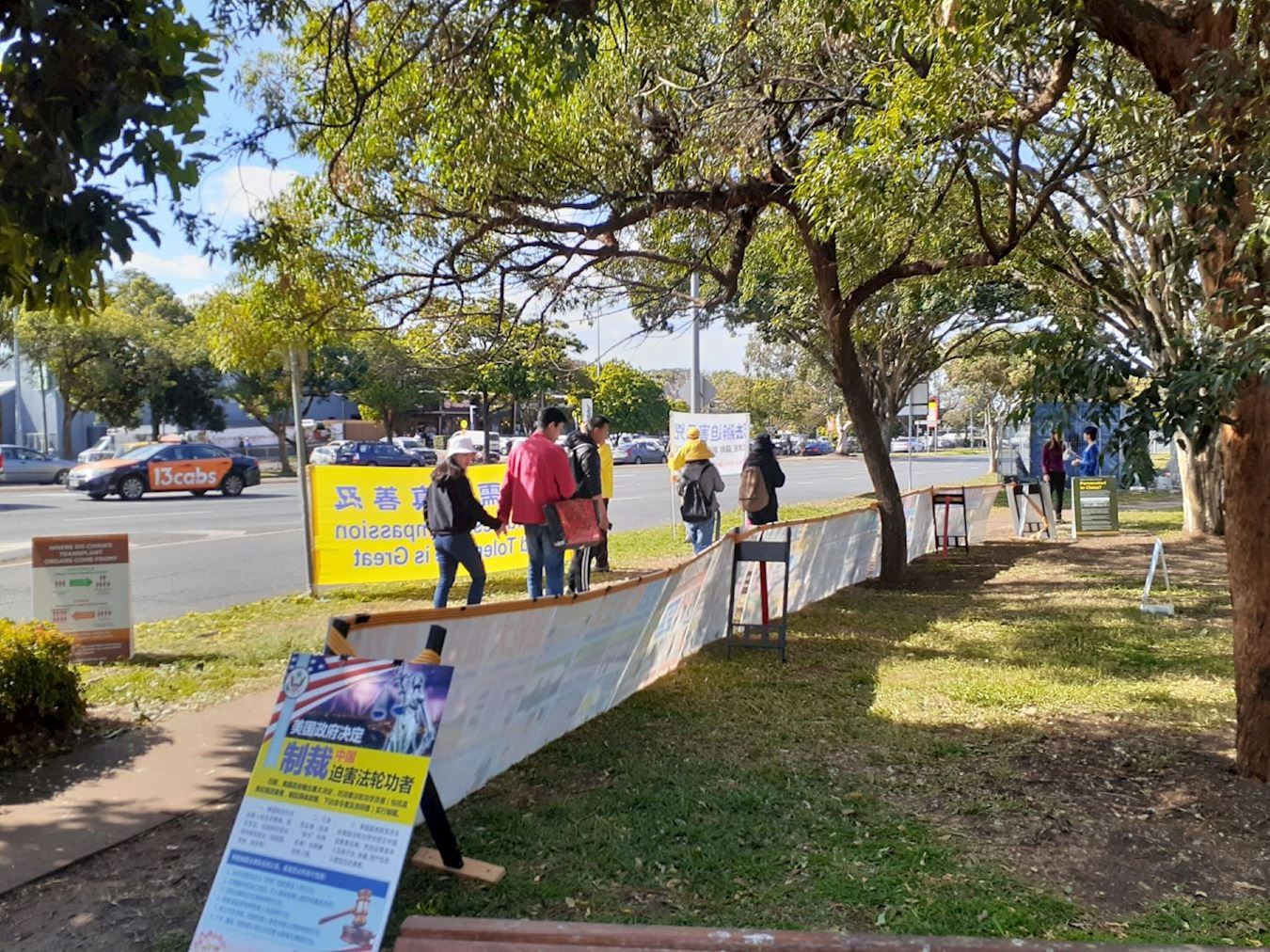 ![]() 图1:昆士兰法轮功学员筑起了真相展板长城 |