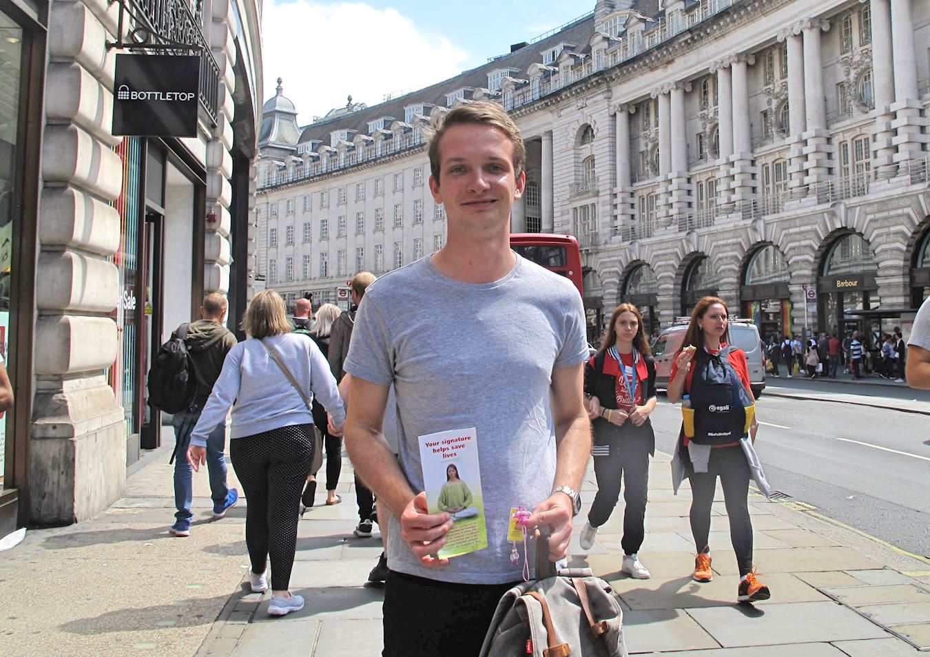 伦敦的一位医生本(Ben)在伦敦大街上被法轮功游行队伍展示的真相吸引,真相传单上揭露的中共活摘器官罪行尤其令他震惊:“游行很棒,我竟然不知道这些正在发生的事情。这是平和的抗议,传递着非常重要的信息。”“非常令人震惊,刚才我在传单上看到活摘器官这么严重的事情。”“这(活摘器官)非常不人道,令人悲伤,不光是我们医生,每个人都会这么想的、这么感受的。”