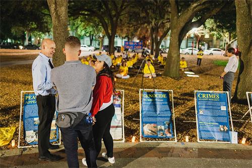Minh Van博士是奥兰多的一位退休医生。虽然行医一辈子,但自己也免不了落下各种疾病。在修炼法轮功之后,她身上的疾病不翼而飞,而更重要的是,她找到了人生的意义。她说:“每年的七月二十日左右,我们佛罗里达中部地区的学员都会在伊奥拉湖畔举办烛光夜悼活动,悼念那些因为修炼法轮功而被中共迫害失去生命的同修。同时,我们也希望通过这个活动让更多的人了解法轮功在中国被迫害的真相。我们希望通过口口相传的形式让更多人知道中国仍在发生的可怕的迫害,帮助尽快结束迫害。”