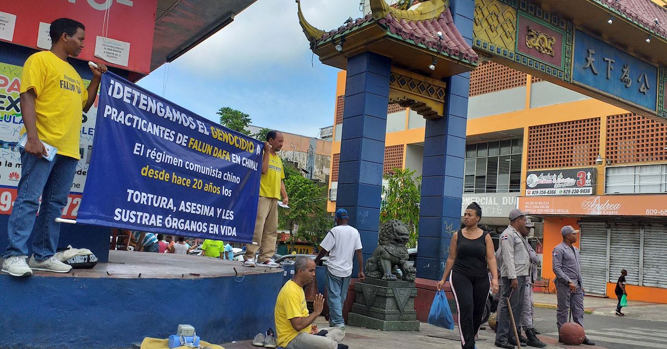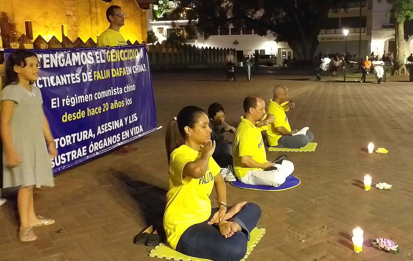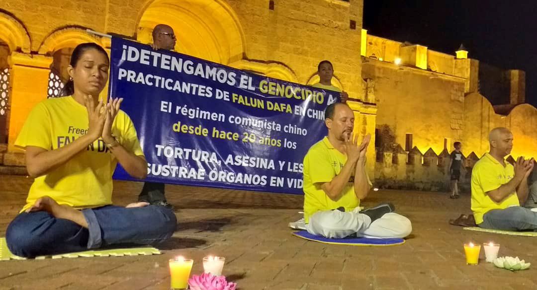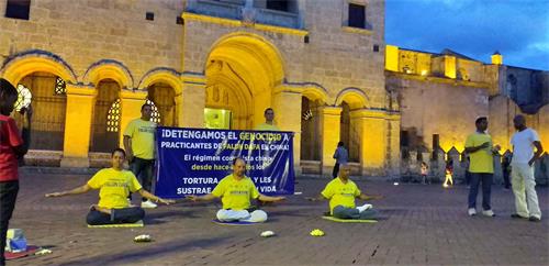 他们还在圣多明各的唐人街揭露中共对法轮功的残酷迫害。之后,他们在圣多明各大教堂前的科隆广场举行烛光守夜活动,悼念被中共迫害致死的同修。