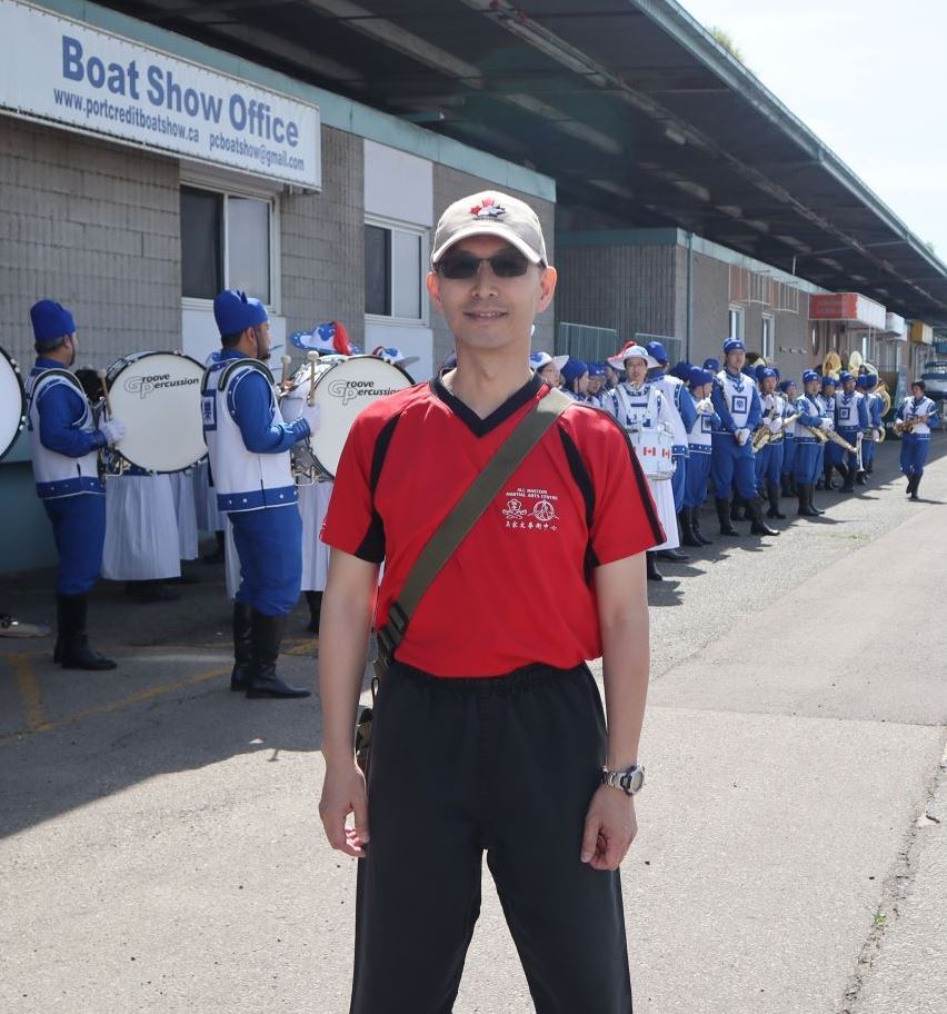 ![]() 图9:在密西沙加,当天国乐团在游行前排练时,国伟一直在旁边欣赏他们的演奏。 |