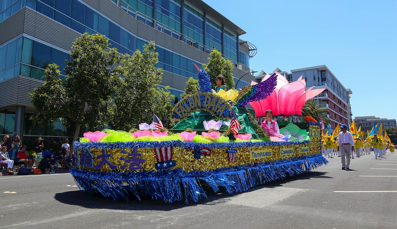 当天的游行主办方在游行队伍沿途设立了多个演讲台,介绍游行队伍。乔治·迪瓦恩(George Devine)是主持人之一,他说自己是第三年主持这个游行了。他说:在这个日子,人们都大家都携家带口出来,一起来庆祝这个好天气,庆祝这个国家,也庆祝家庭。他表示他很喜欢法轮功这个队伍。
