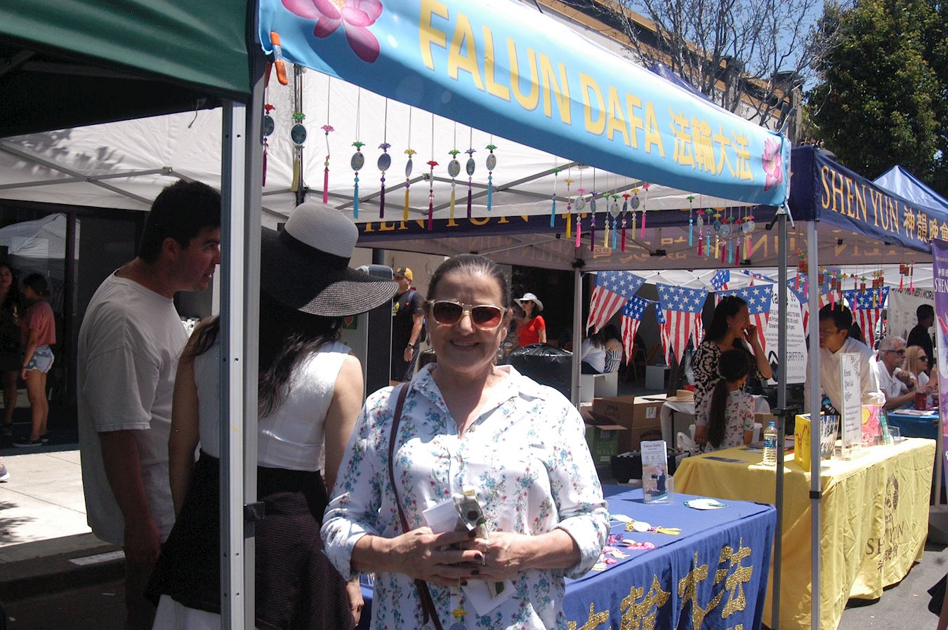 莫妮卡(Monica)是旧金山湾区一家非营利组织的策划协调人,她看到法轮功学员特别高兴,说:“你知道吗?我家在你们炼功点的附近,我常常看到你们的炼功。看到你们炼功,你们的炼功场散发着很强的、正的能量,让人感到很舒服,很祥和。我一直想学。今天看到你们太好了。”当听说,湾区近期有一个教功班,她非常高兴马上索取了信息。
