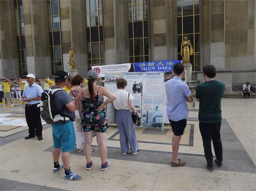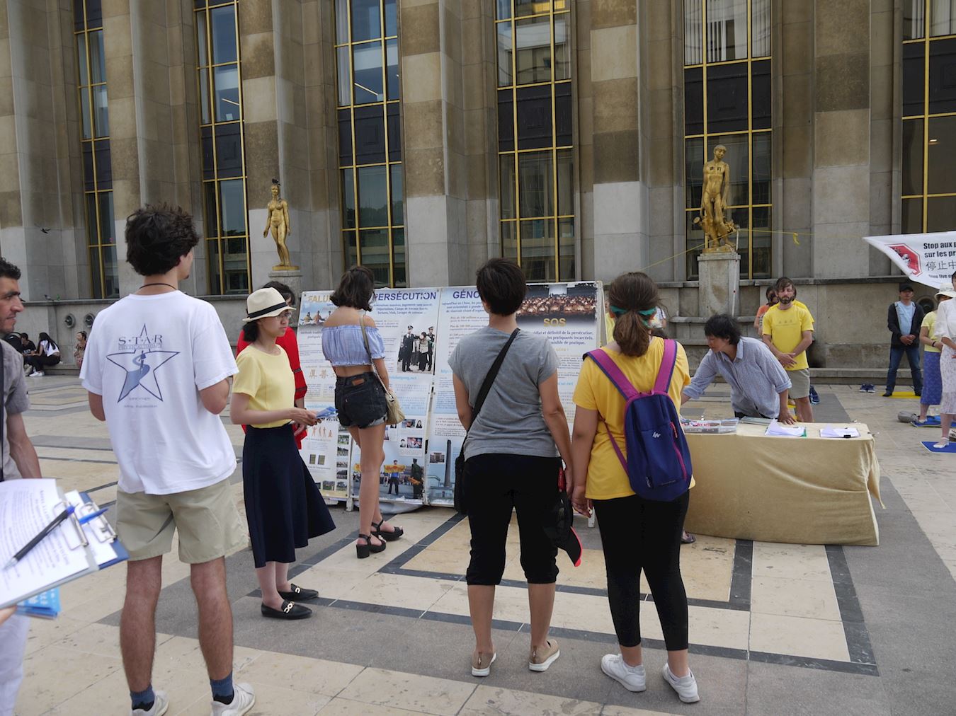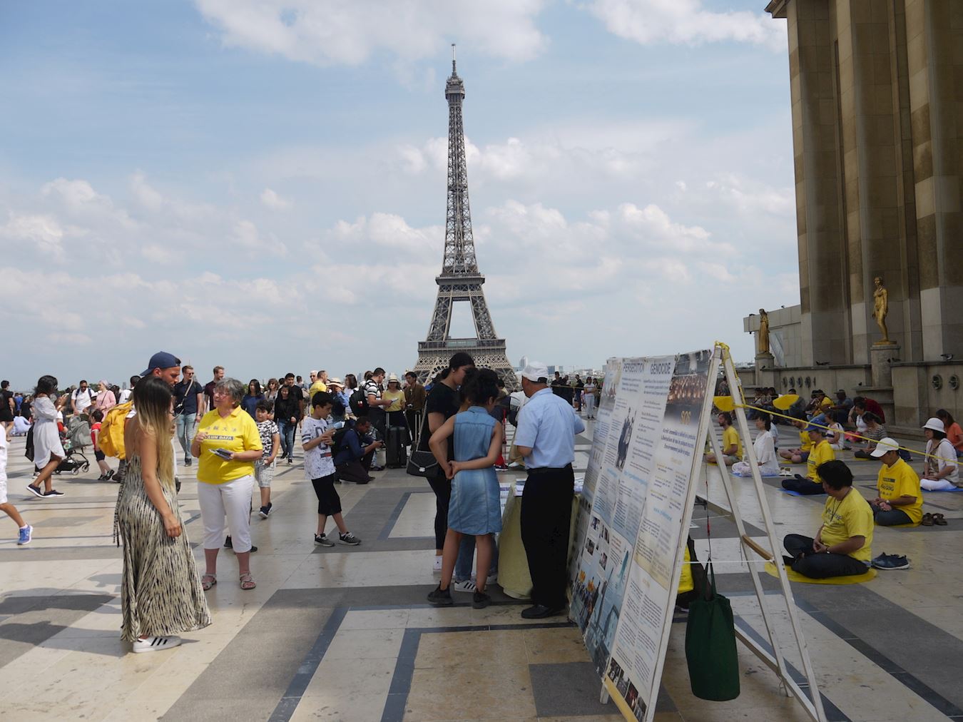 【明慧网二零一九年七月九日】(明慧记者周文英巴黎报道)进入夏季,在巴黎埃菲尔铁塔,每天都有大量世界各地的游客前来观光。二零一九年七月七日下午,如同每个周日一样,法轮功学员在巴黎铁塔边的人权广场,举办了法轮功功法演示、讲真相、揭露中共迫害罪行及征集签名反迫害的活动。