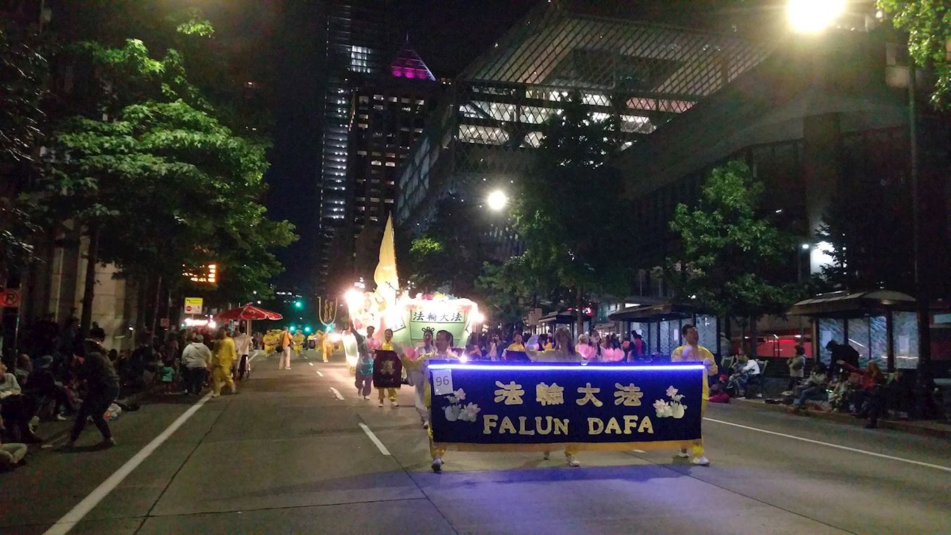 ![]() 图1~5:法轮功学员参加第七十届西雅图“海洋节炬光游行”(Seafair Torchlight Parade) |