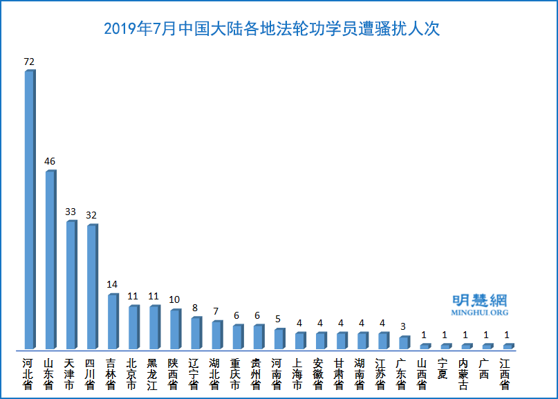 ![]() 图1:2019年7月逾千名大陆法轮功学员遭中共绑架、骚扰迫害 |