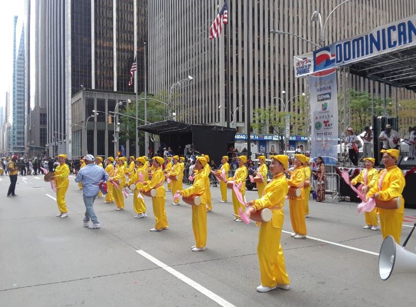 腰鼓队负责人厉女士介绍,活动主办方负责人William Cedeno在邀请腰鼓队的时候曾表示,“在纽约有众多的多米尼加移民,我们很高兴、很欢迎法轮功腰鼓队参加本届游行,展示中国传统文化,为纽约多元文化增添色彩。”