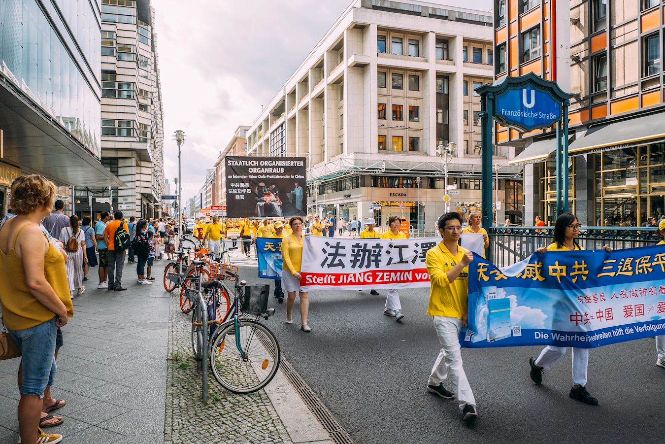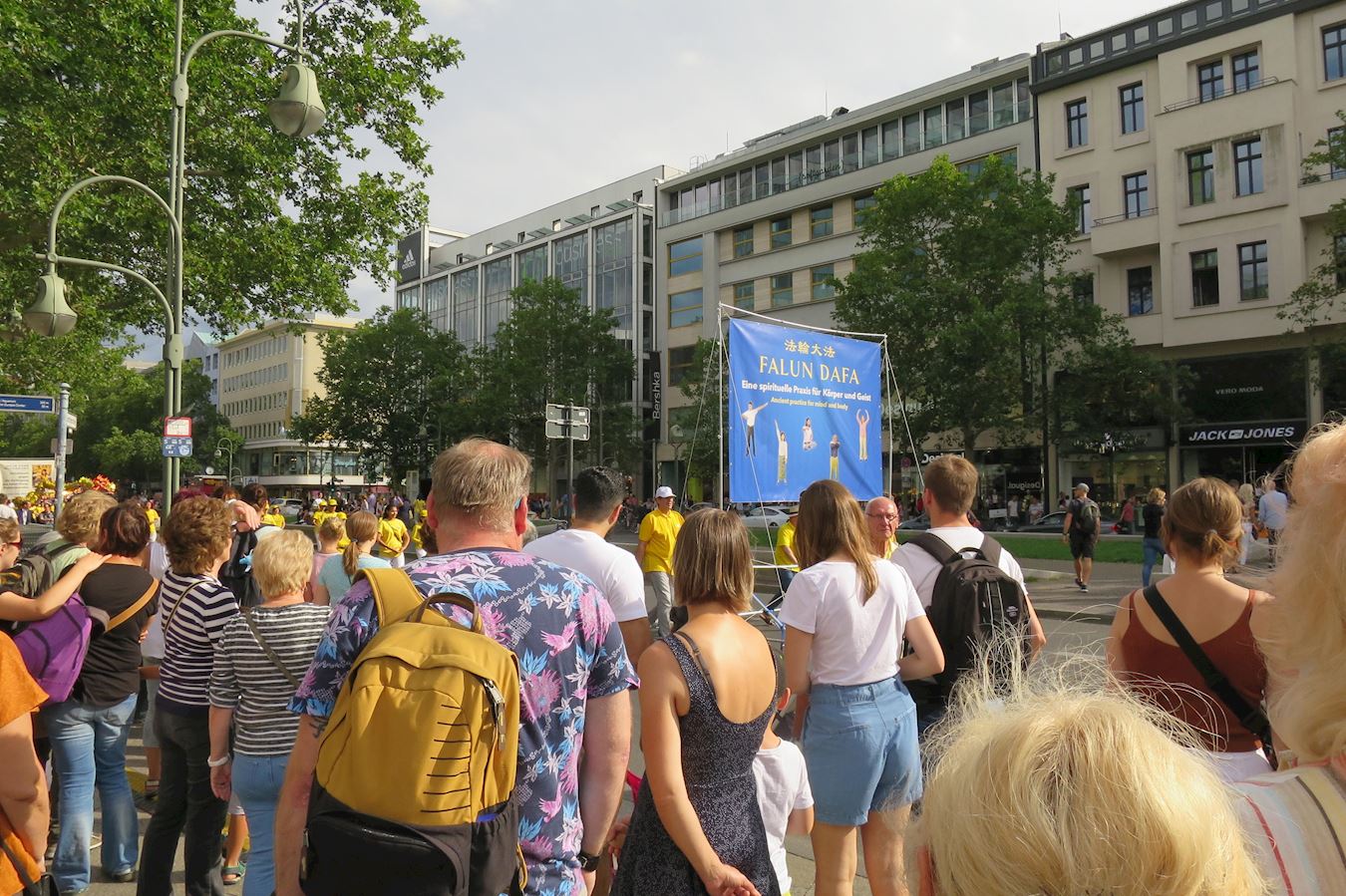 大陆来旅游的一位年轻女子觉得法轮功学员的队伍“很有秩序,给我的感觉很有条理”。还有一位父母来自武汉、在德国生长的女子,在签名簿上签名声援法轮功,她觉得法轮功学员的队伍很美、很和平,组织的很好。