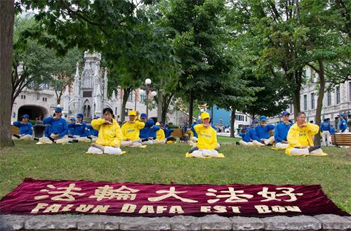 ![]() 图3:法轮功学员在展示五套功法 |