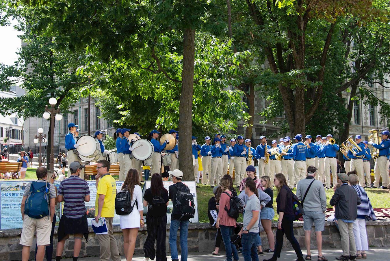 大陆来旅游的一位年轻女子觉得法轮功学员的队伍“很有秩序,给我的感觉很有条理”。还有一位父母来自武汉、在德国生长的女子,在签名簿上签名声援法轮功,她觉得法轮功学员的队伍很美、很和平,组织的很好。
