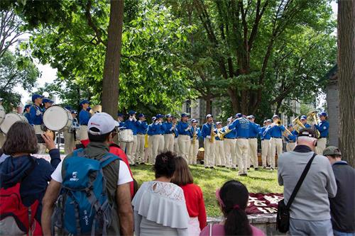 法轮大法腰鼓队第一次应邀参加该游行,带来具有浓郁中国传统文化色彩的腰鼓队表演,她们身着中国传统服饰,民众一看就知道是华人的队伍。腰鼓队表演了《法轮大法好》、《三:退.进行曲》、《天灭中共进行曲》等乐曲,鼓声铿锵有力,响彻云霄,震撼人心。街道两旁民众高声欢呼,喝彩,人们纷纷拿起手机录像、拍照,喜不自胜。