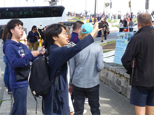 在两天的活动当中,有不少华人和大陆游客观看了法轮功学员的游行、集会和集体炼功。不少华人和大陆游客表示,法轮功学员的队伍非常好,很震撼。也有不少人当场表示退出中共的各种组织。