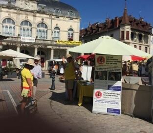 ![]() 图2~3:法轮功学员在贝藏松市设置展台,传播真相。 |