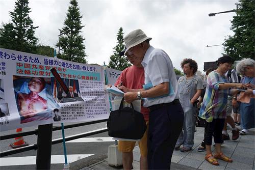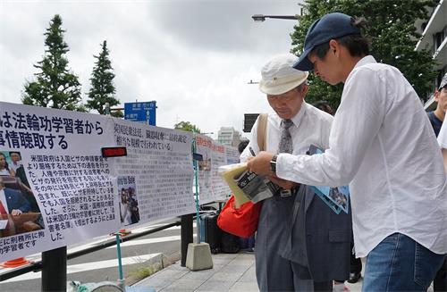 一位日本市民表示:“经过这里,知道江泽民做了这么恶劣的事情,摘取活人器官买卖,用电棍打女性法轮功学员,感到特别震惊,而且迫害直到今天还在持续着,我觉得应该制止,于是我就签了名。”