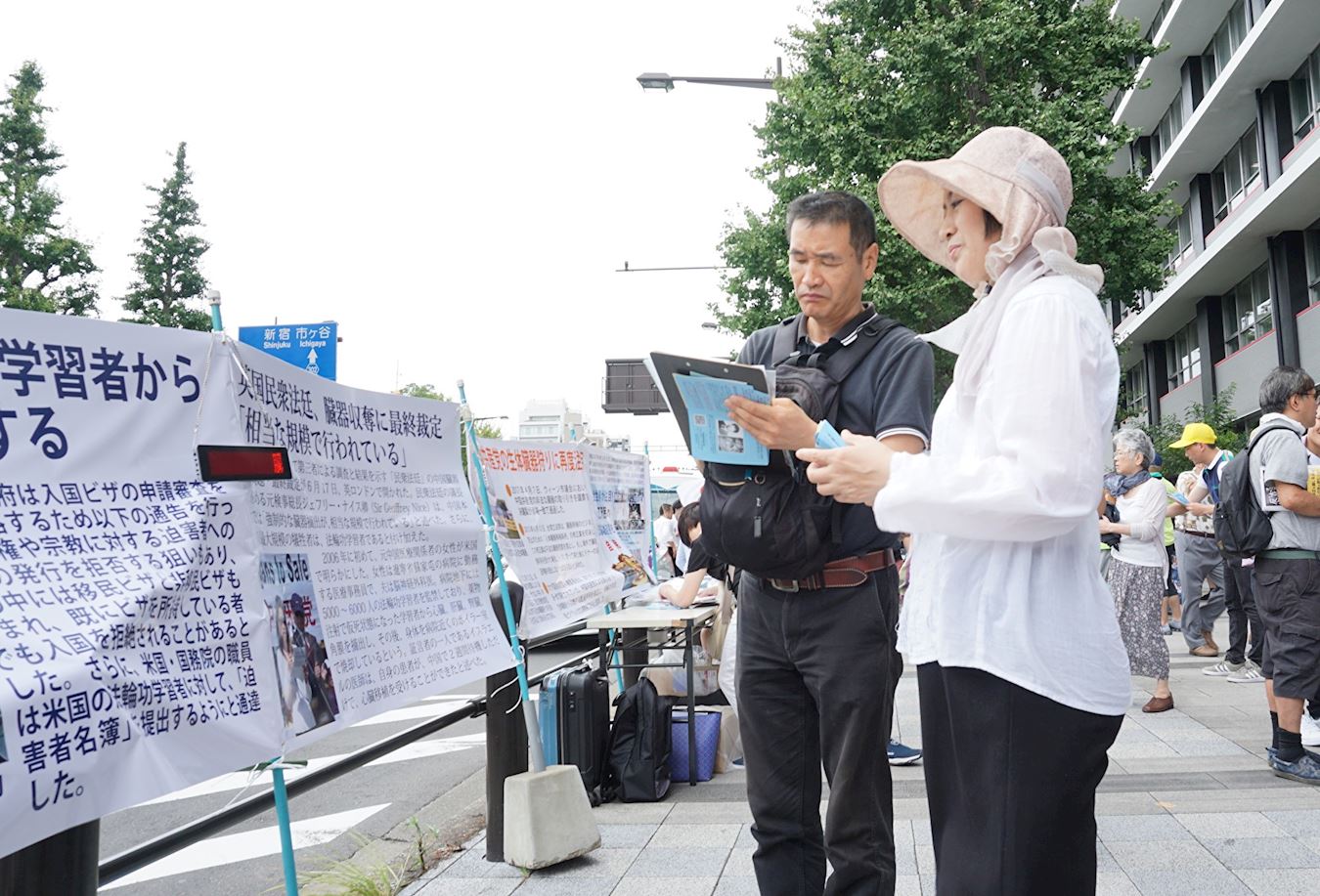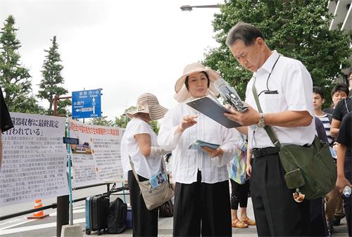 二零一九年八月十五日,烈日当空,法轮功学员在东京九段下车站摆起真相看板,向民众讲述真相,并征集签名举报江泽民。在了解到中共活摘法轮功学员器官等罪恶时,人们表示震惊,随即签名声援法轮功学员,举报江泽民,支持正义良知。当日在东京九段下车站的征签点有超过一千八百名日本民众和外国游客在连署举报书上签名。