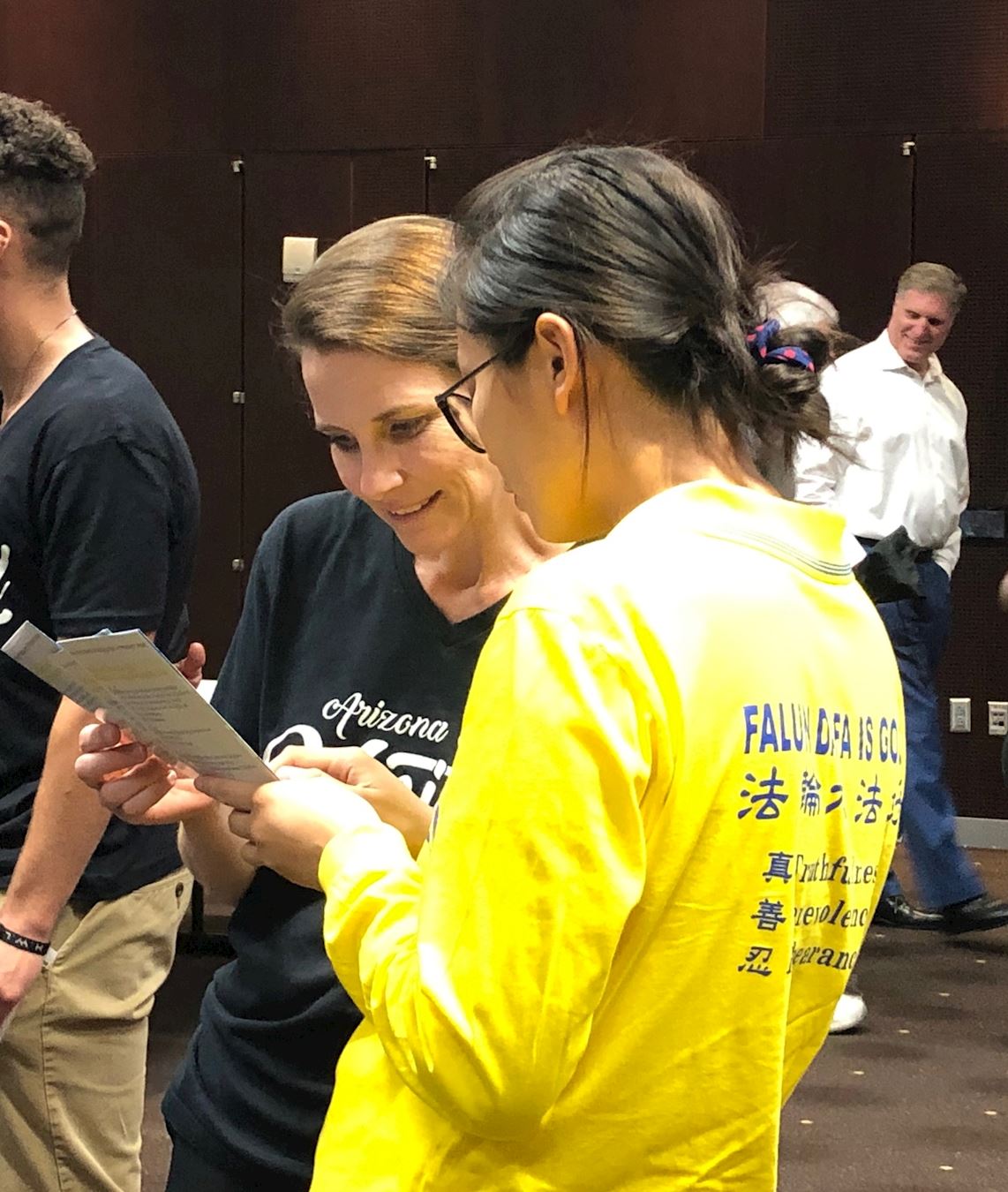 一名在学校工作的顾问(advisor)表示想了解法轮功,她对法轮功在中国遭受的迫害表示同情。她曾经去过香港,对中共的作恶多端有所了解。她佩服法轮功学员不屈不挠的反迫害精神,还主动和身边的朋友分享她拿取的资料,希望更多人了解真相。
