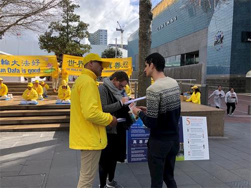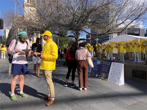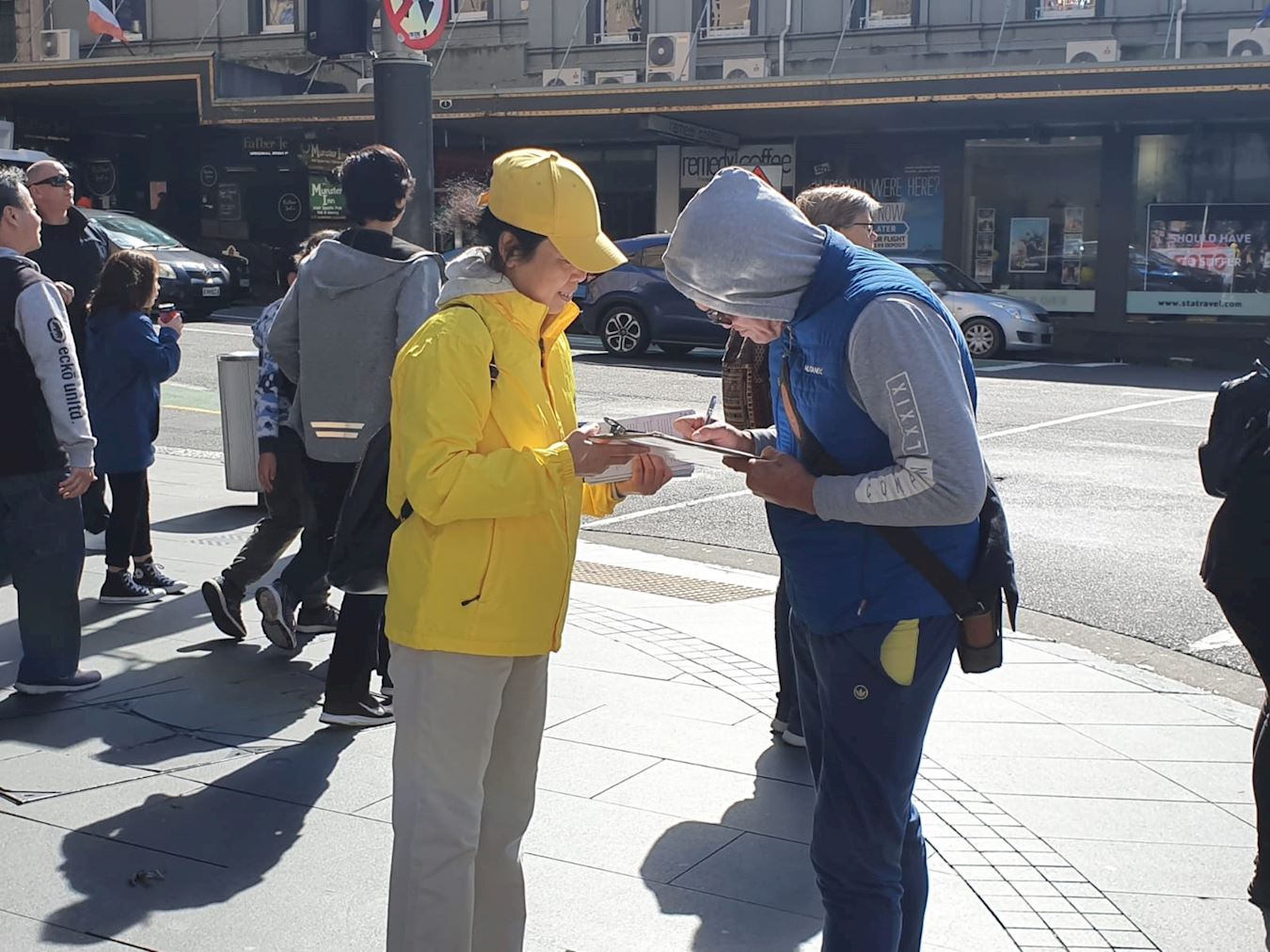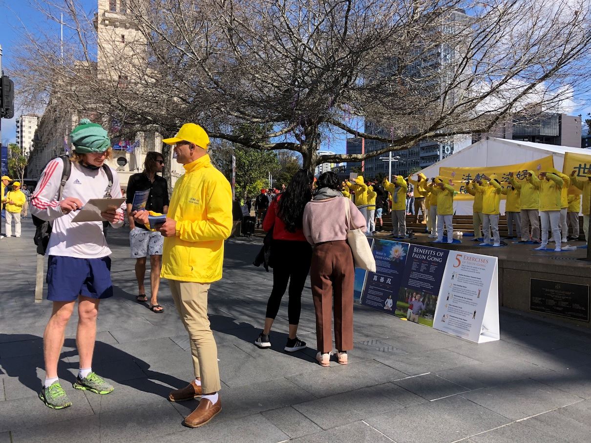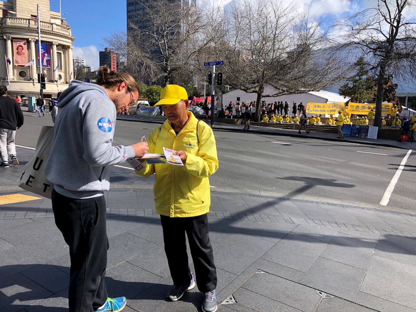法轮功学员耐心地一一解答完所有问题后,并告诉华人,中共一党专政、不择手段迫害异己的行径与世界普世价值完全对立,在中共的执政下,人们精神领域的缺失使得当今中国人道德下滑,一日千里。很多华人听后都表示赞同。