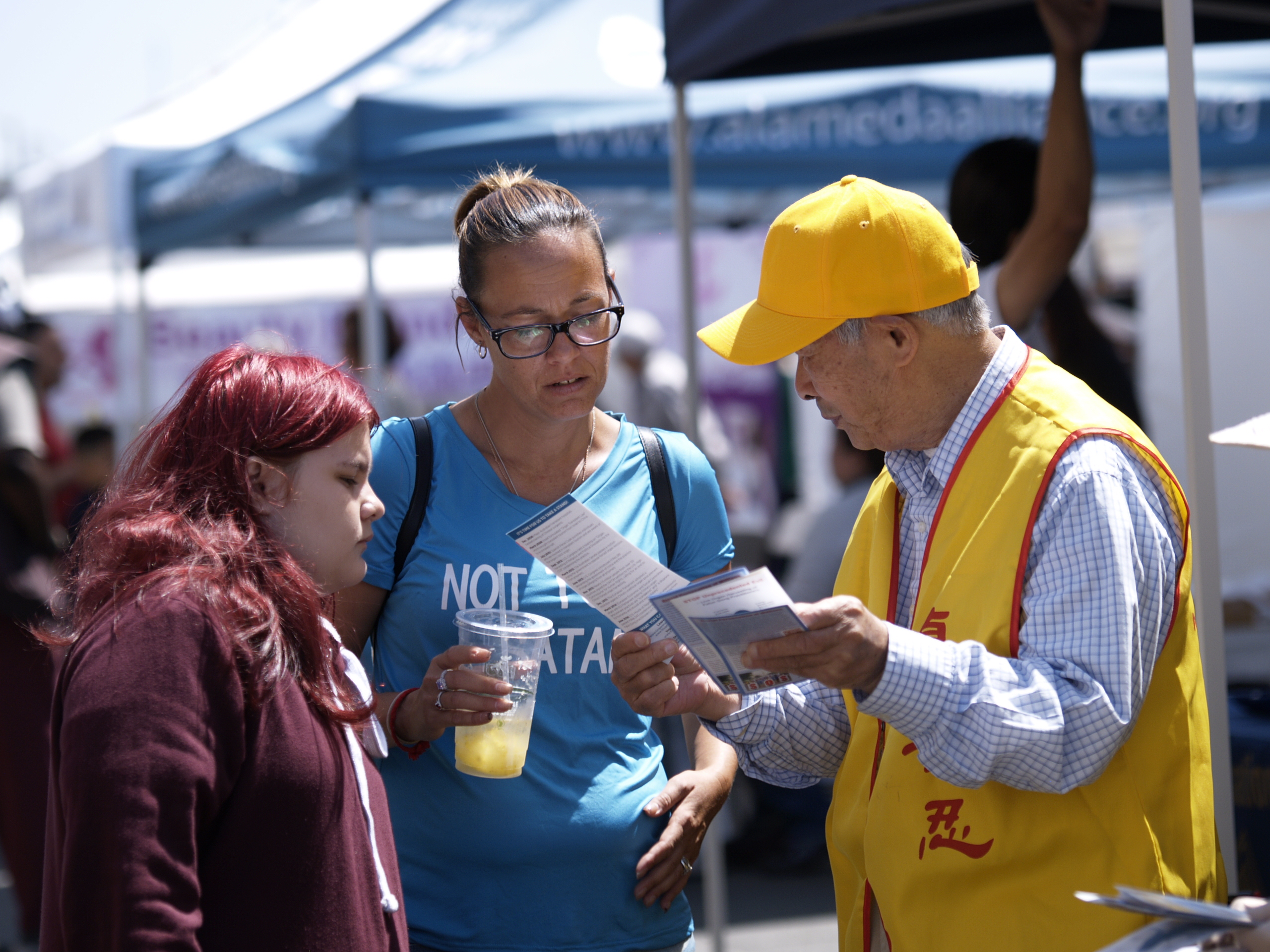 【明慧网二零一九年八月二十七日】美国加州奥克兰市一年一度的中秋街会于二零一九年八月二十四日和二十五日,在该市的中国城热闹举行,吸引各族裔民众前来。与往年一样,法轮功学员于二十四日在街会上摆放了摊位,向民众传播法轮功的真相,并劝华人三