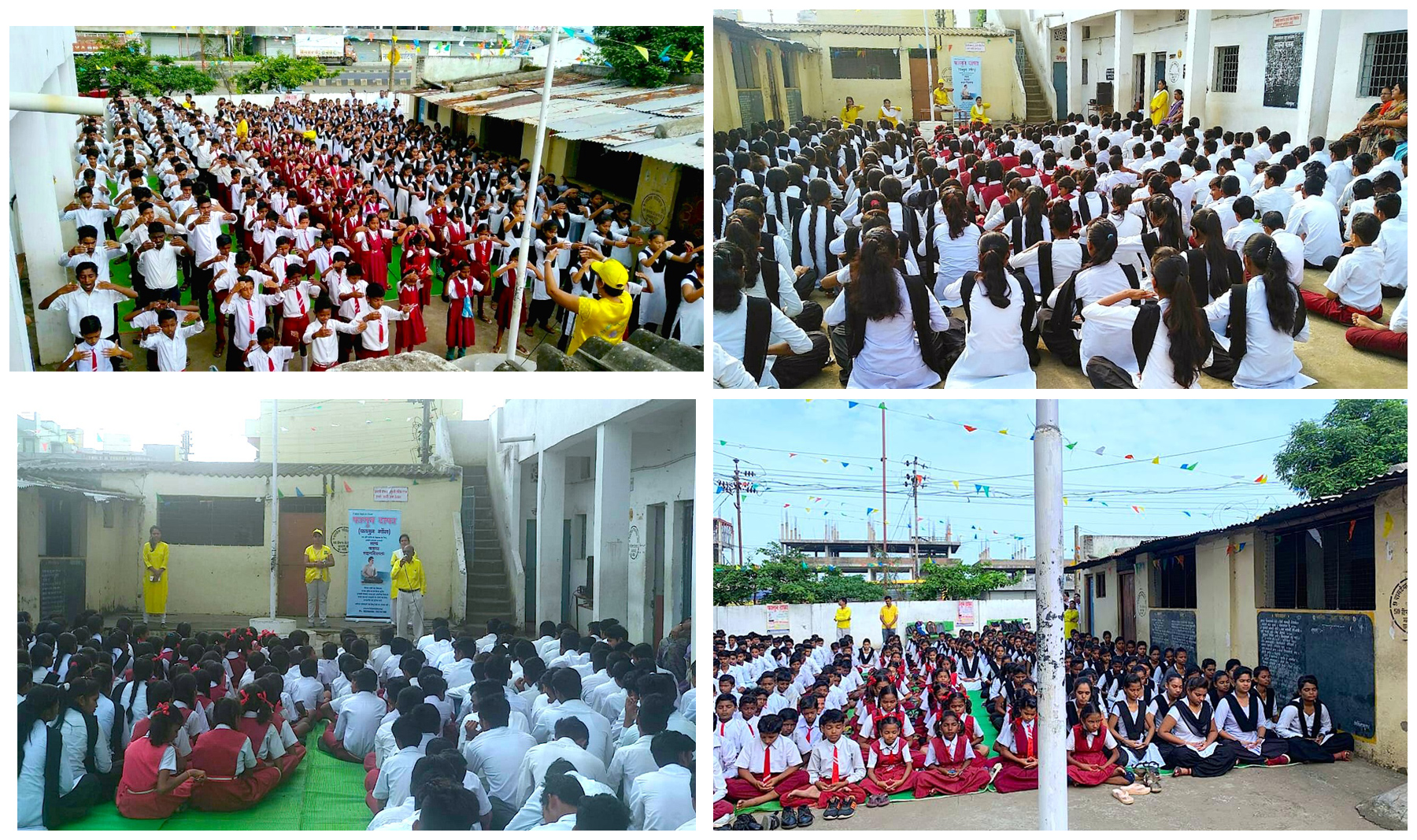 纳格浦的部分学员们在早上七点半来到吉杰玛特 (Jijamata)学校教授法轮功功法,学校校长杰尔坎(Jeurkan)先生与学员们配合默契。活动原决定在中学教功,但校长准备好让高中和大学同时学习法轮功功法。并准备好了麦克风,安排了三百多名学生在学校的运动场上等候学员们教功。学员们向学校的师生们讲述了什么是法轮大法,“真善忍”是法轮功的修炼原则,向三百多名师生教授了五套功法。校长和许多老师都说这个功法好,他们表现出了极大的兴趣,并向学员们提出了许多问题想进一步了解法轮功功法。他们表示将来访问那格浦时,肯定会找到学员进一步学习法轮功。