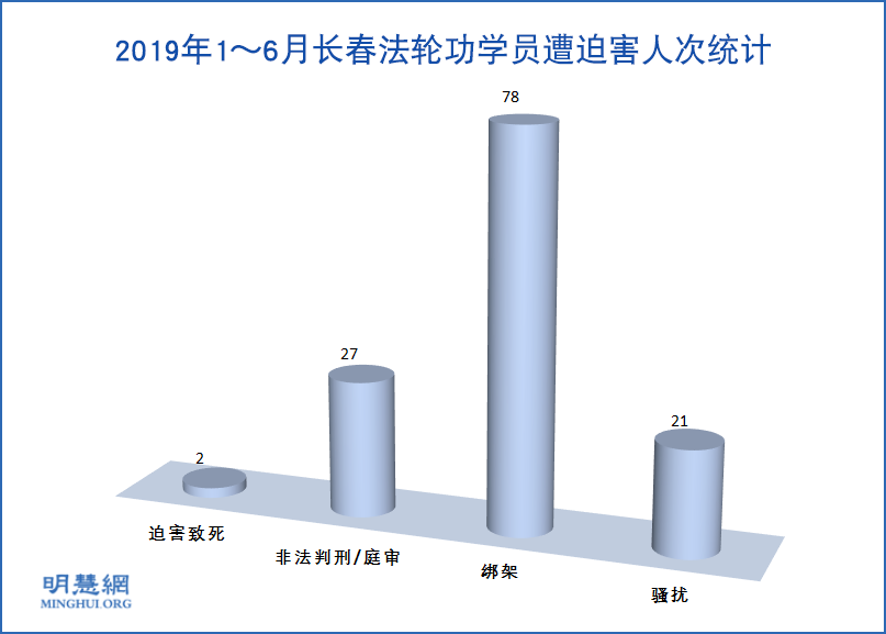 ![]() 图:2019年1~6月长春法轮功学员遭迫害人次统计 |