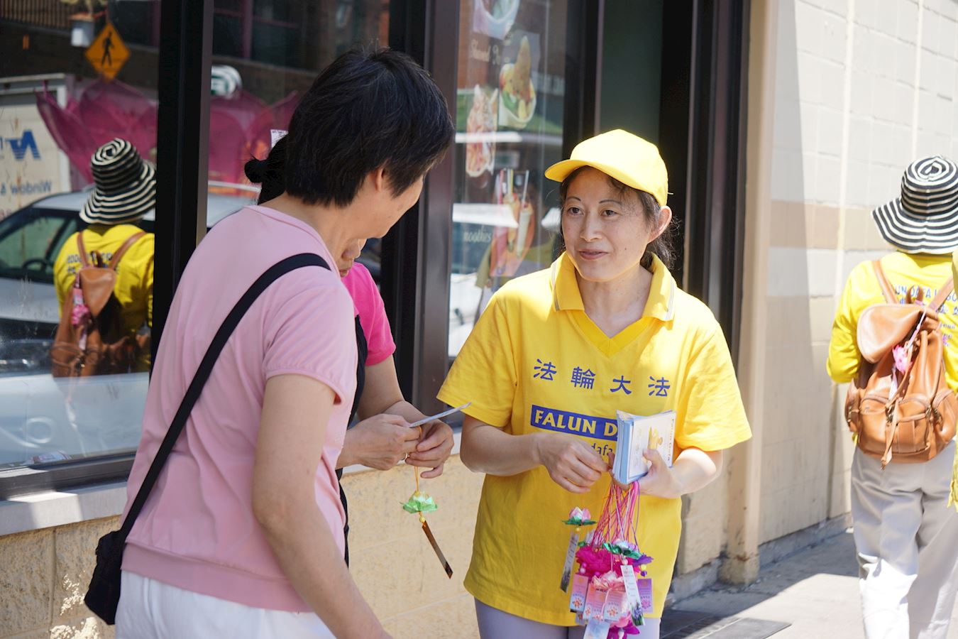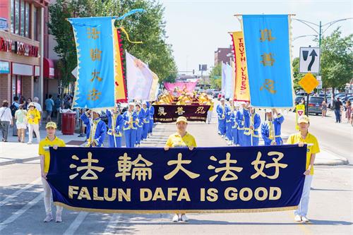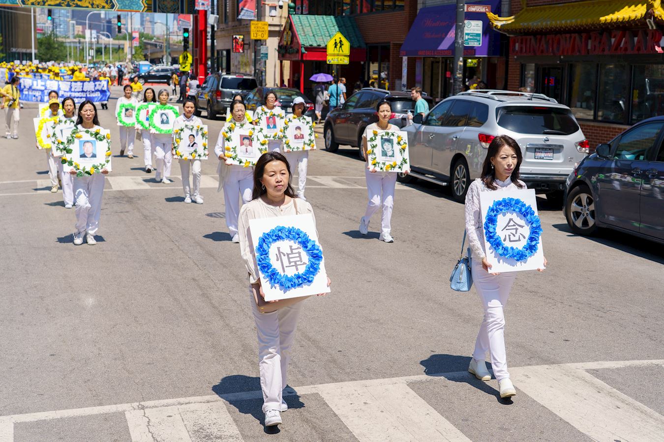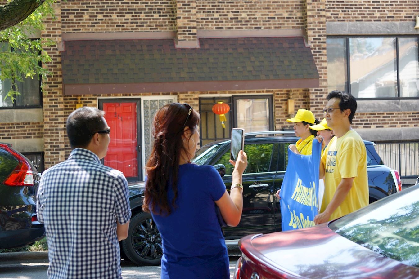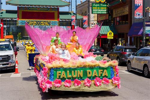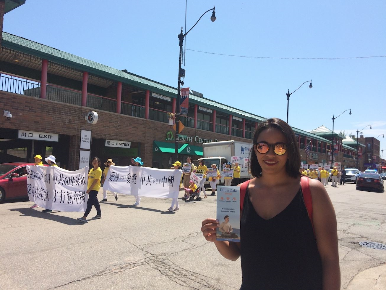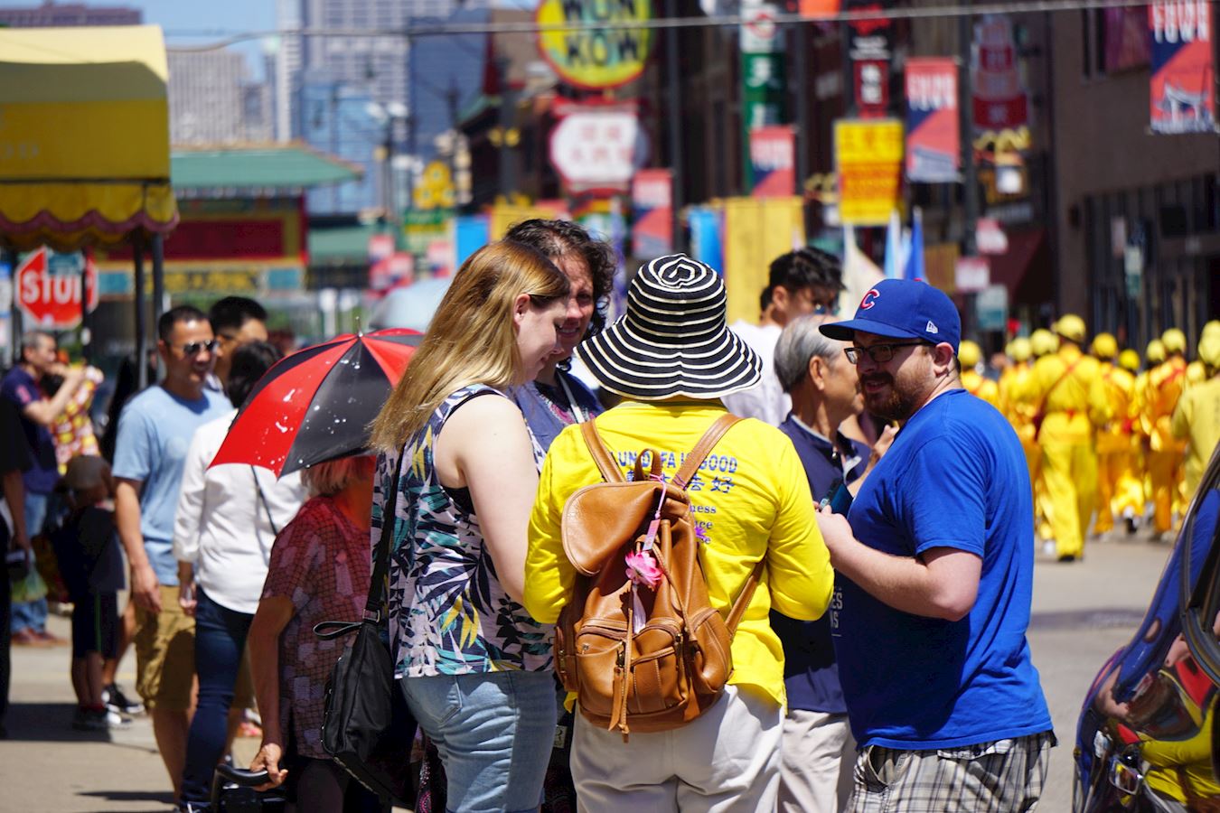 【明慧网二零一九年八月五日】二零一九年八月三日,来自美国中部十一个州,包括密西根州、俄亥俄州、印第安纳州、明尼苏达州、密苏里州、威斯康辛州、肯塔基州、内布拉斯加州、堪萨斯州、爱荷华州和伊利诺伊州的部份法轮功学员,再次聚集在美国第三大城市——芝加哥,并在市中心著名景点——中国城,举行了反迫害二十年主题游行,呼吁制止中共对法轮功长达二十年的残酷迫害。法轮功学员们手持中英文“法轮大法好”、“停止迫害法轮功”和“法轮功和平理性反迫害二十周年”等大型横幅,走上中国城中心的永活大街,穿过著名的华埠广场,向中西方民众传递真相,呼吁制止迫害。