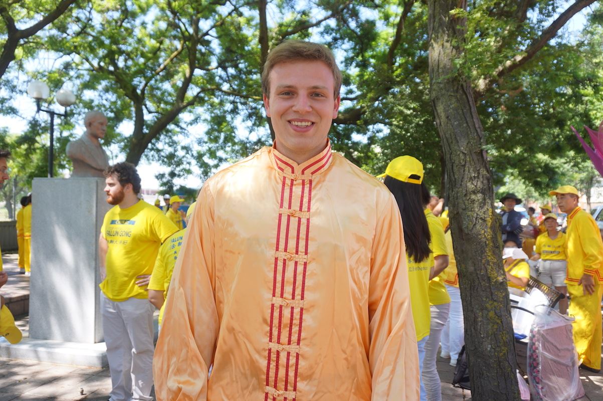 奥地利留学生帕特里克·阿托弗(Patrick Arthofer)表示他从小跟随父亲炼过法轮功,但那时他才八岁,懵懵懂懂的,没有坚持下来。“高中时,我觉得生活没有动力,怎么活都无所谓,我就去做自己喜欢的事,怎么高兴怎么来。”Arthofer说,他高中时成绩很差,留级了一年,还喝酒、抽烟、泡酒吧。他接着说:“有一天我觉得这样下去也没有意思。我对父亲说,‘记得我们在很多年前炼的那套功法吗?能展示给我看吗,我要试一试。’我于是重新炼功读书。我理解到这个功法是提升我的品格,让我学会更真诚、善良和宽容。”