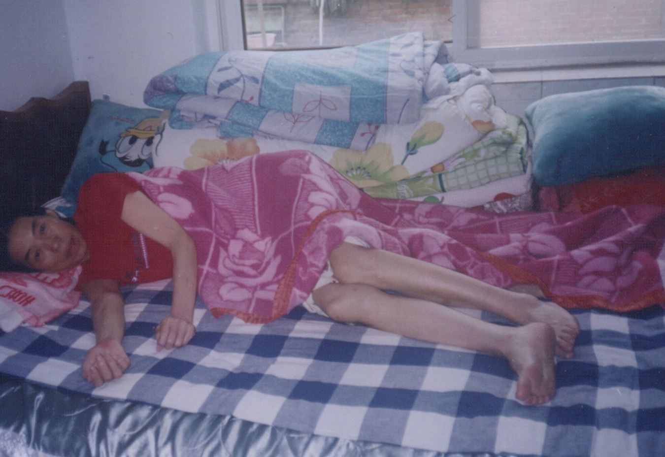 我在女二所从遭体罚、剥夺睡眠、吊刑、绑死人床等一系列酷刑折磨,到遭野蛮灌食打成脑震荡,头部肿块仍很严重,又被多个狱警过电棍导致窒息,身体已十分虚弱,到二零零五年七月,已处于瘫痪状态。此时马三家女二所为推卸责任,在超期关押我两个月后的二零零五年七月二日放人。